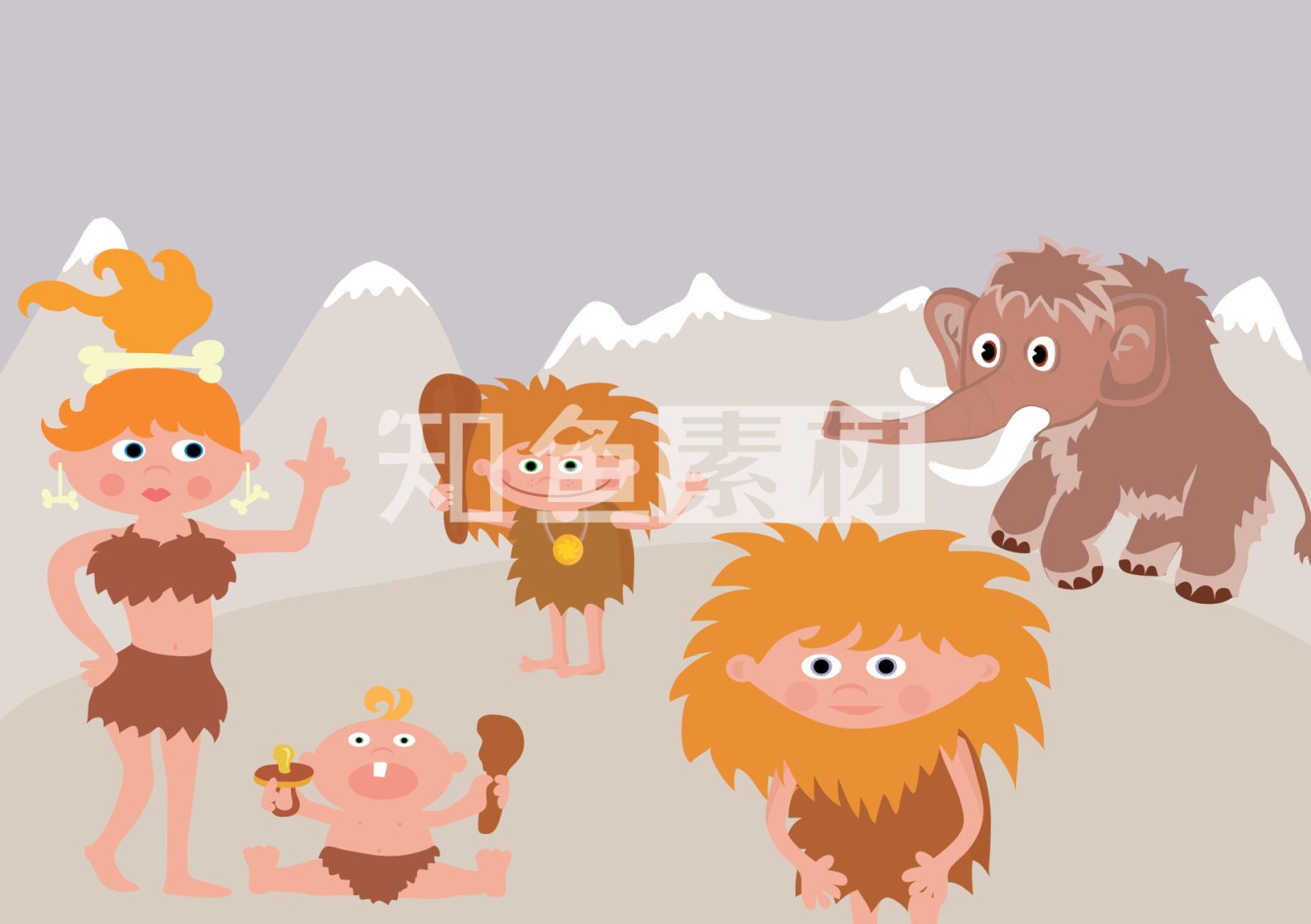 史前史猛犸象家庭原始人搞笑冰河世纪婴儿儿童史前石器时代