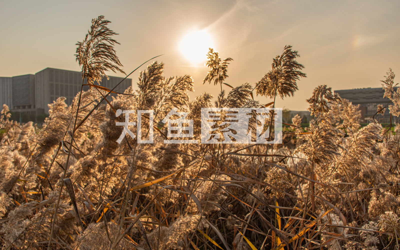 秋天的傍晚,微风吹拂着芦苇荡,温暖的阳光洒在这天地间。