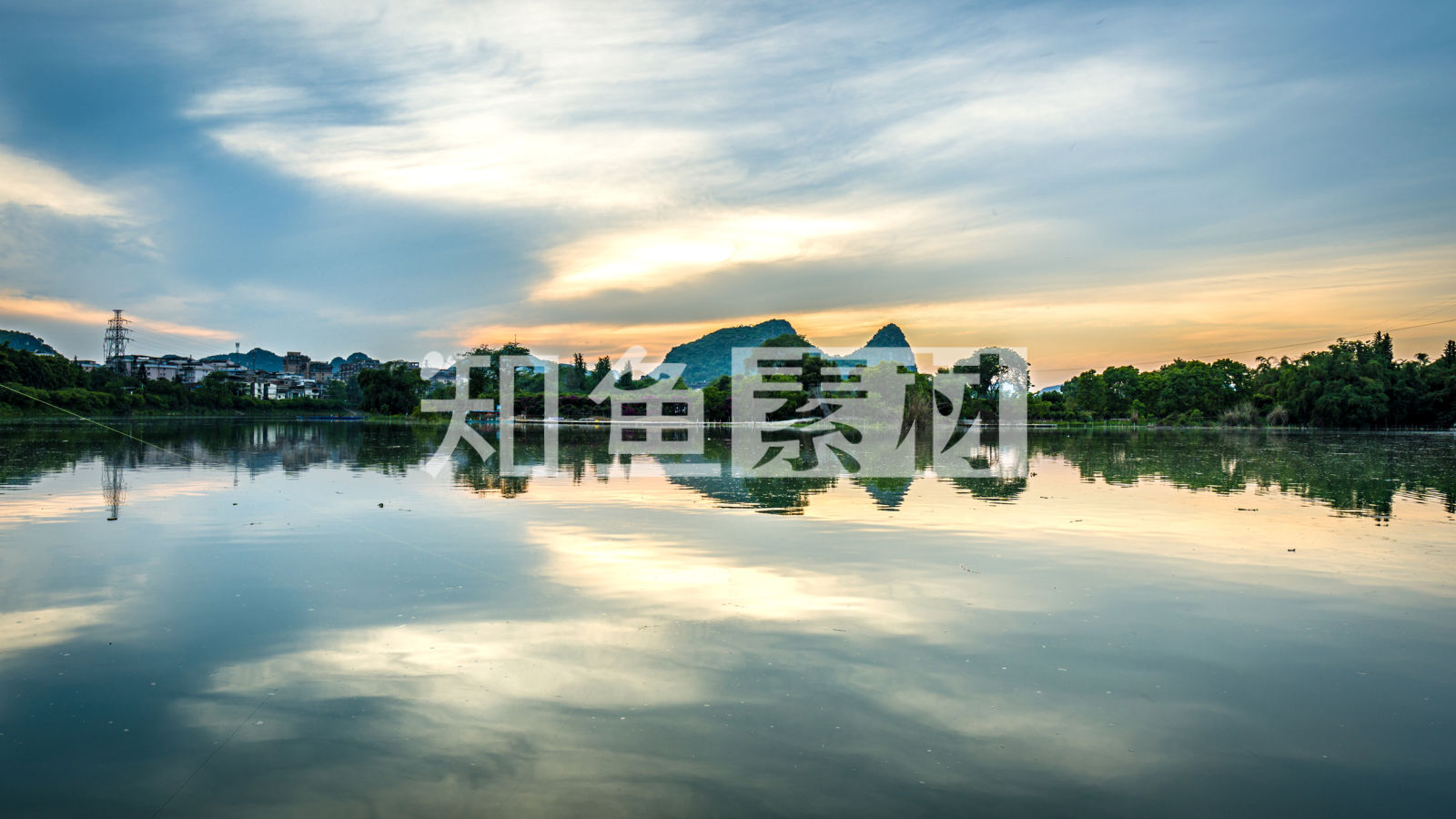 航拍大自然山川日落晚霞夕阳湖面倒影