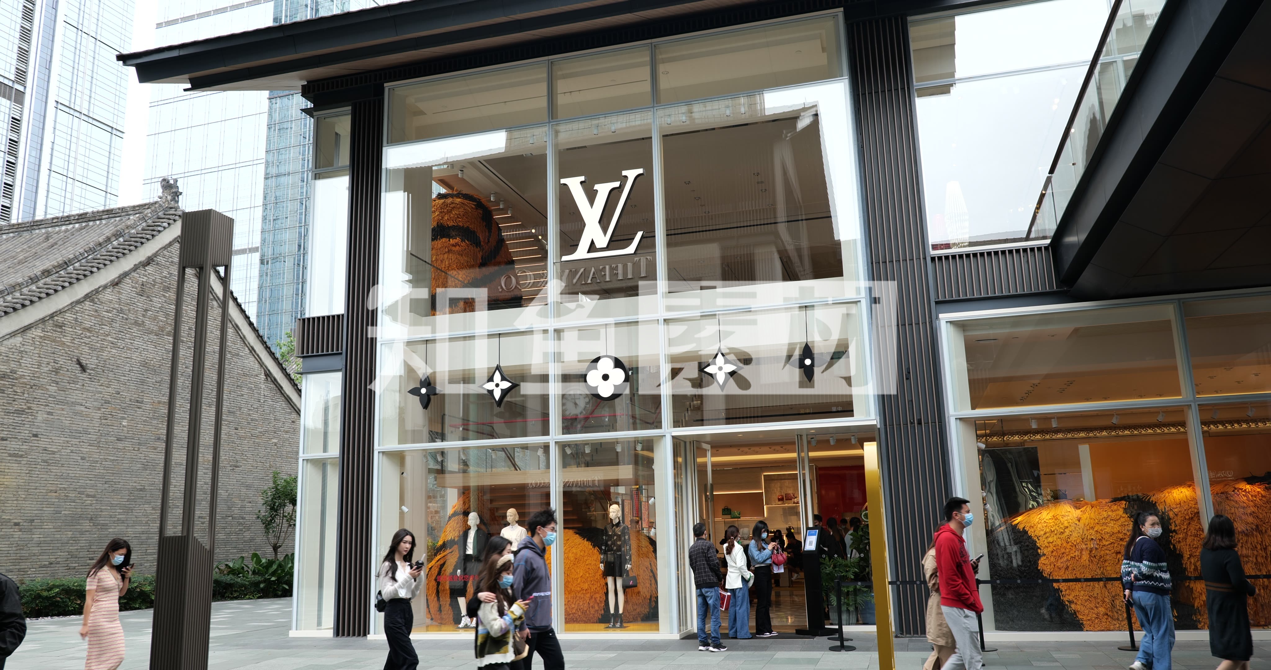 建筑 地标建筑 服装 衣服 橱窗 店面 人 面部 男性 LV 路易威登 奢侈品 奢侈品牌 太古里 商场 购物中心 成都太古里 购物