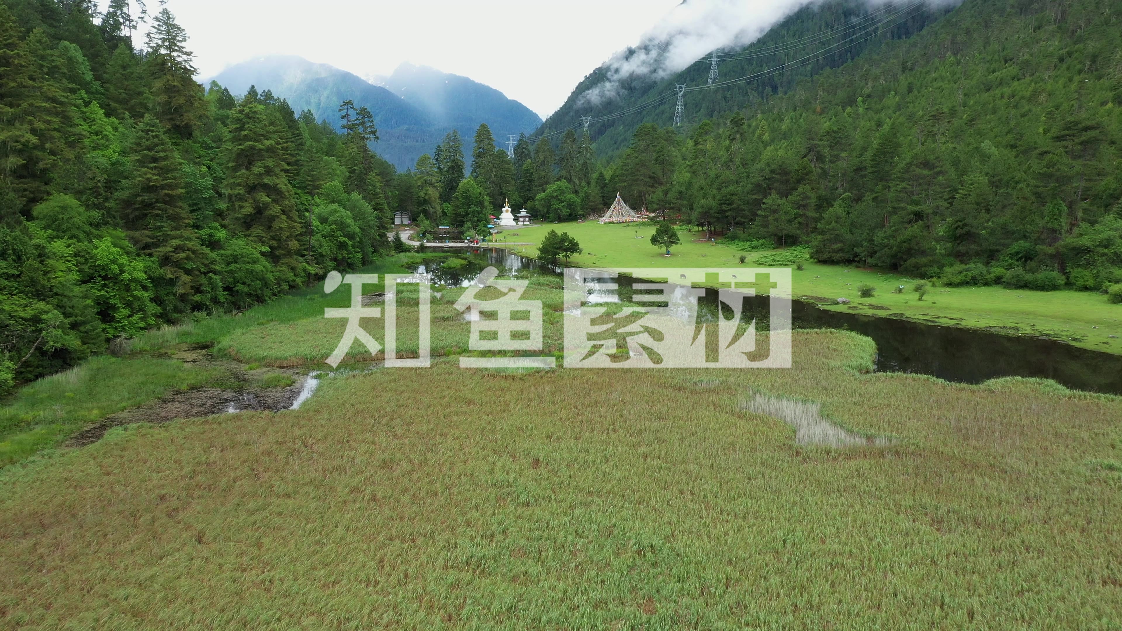 航拍雨后的鲁朗镇扎西岗村田园风光