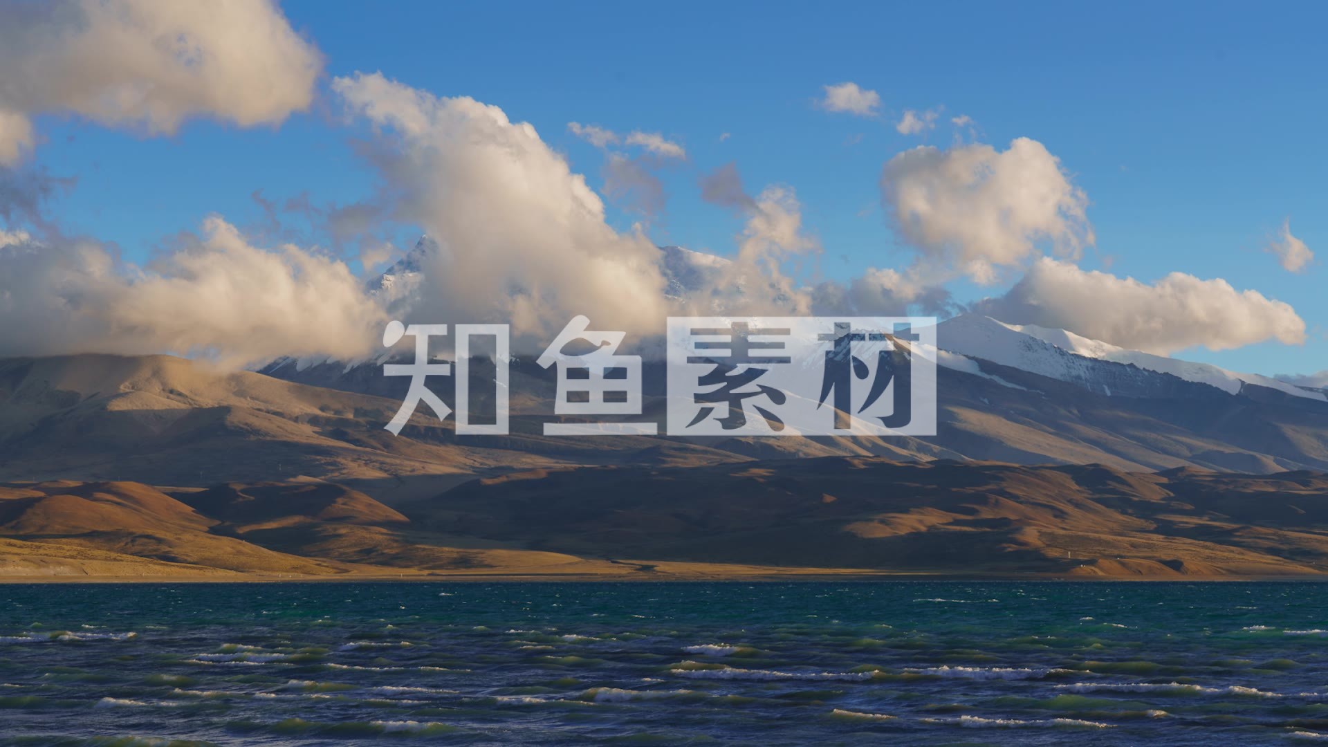 女孩坐在玛旁雍错湖边眺望纳木那尼峰