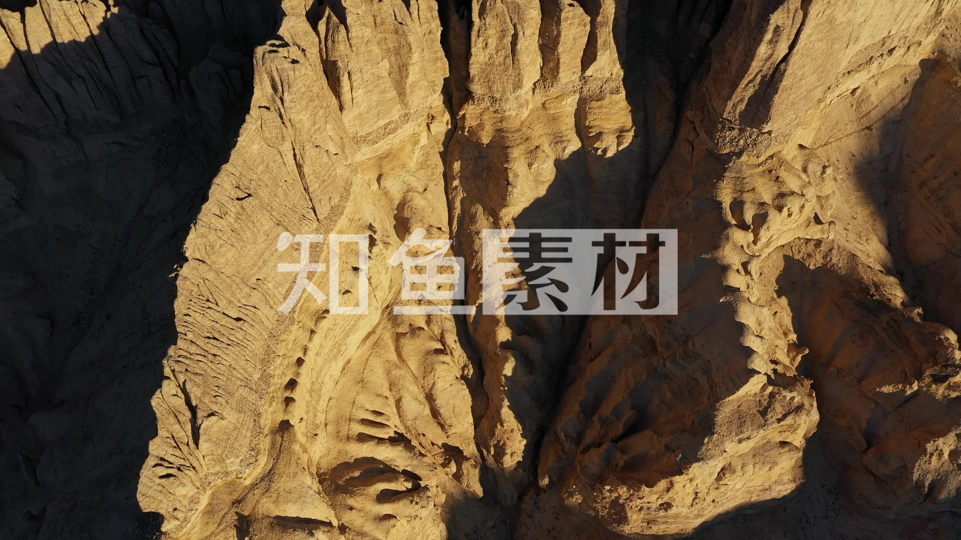 航拍夕阳下金黄色的西藏阿里札达土林