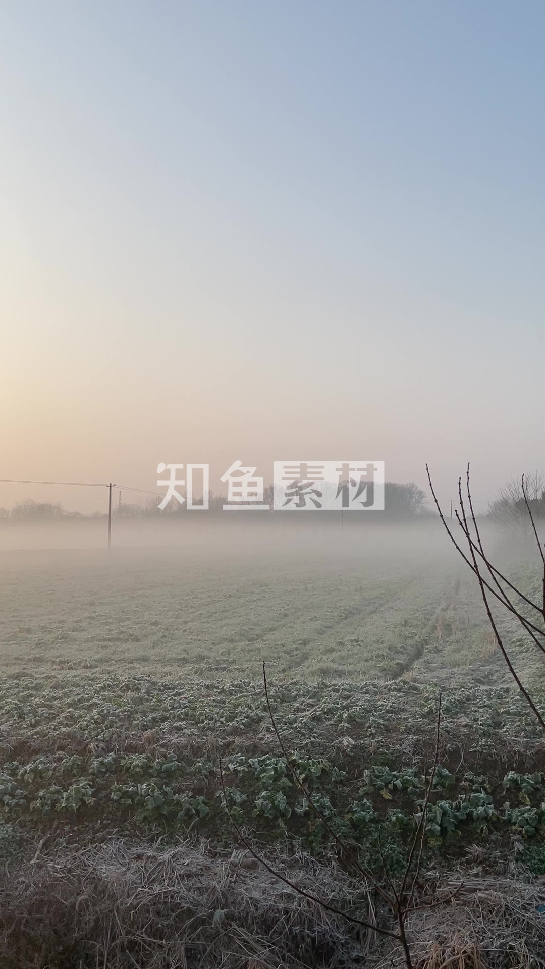 朝阳缓缓升,乡野雾气蒙, 冬晨清景见,田野朦胧中。