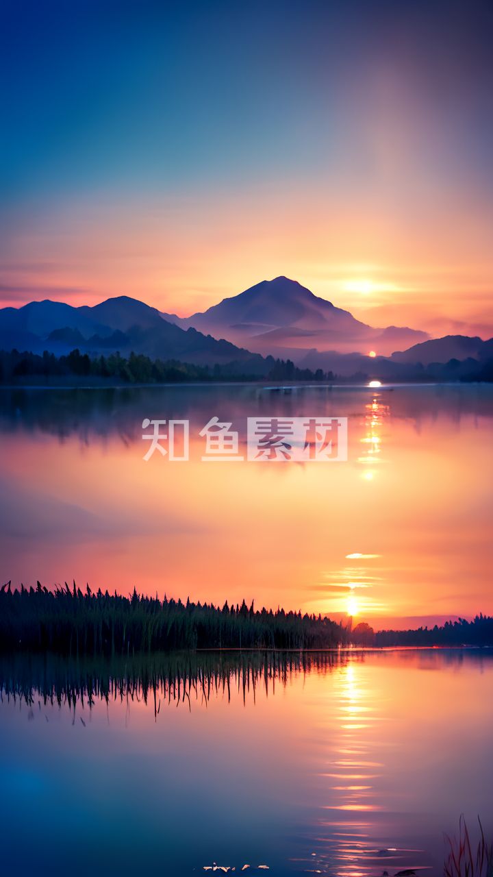 晚霞湖泊唯美