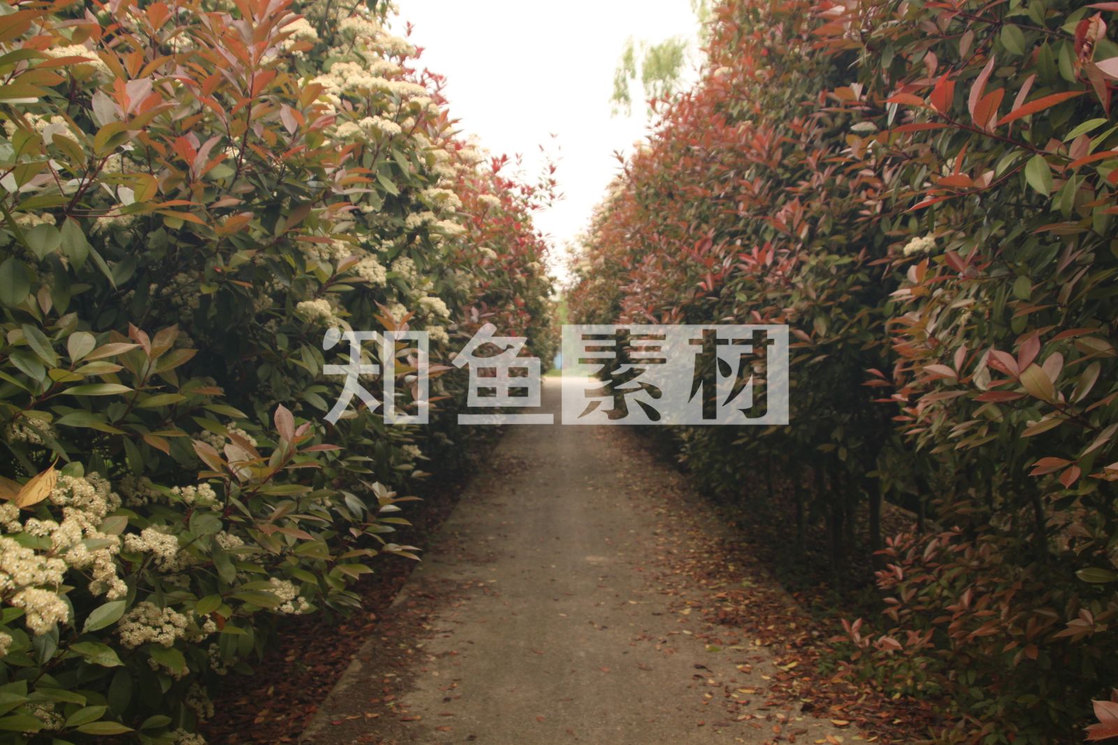 一条小水泥路两侧长满了小树