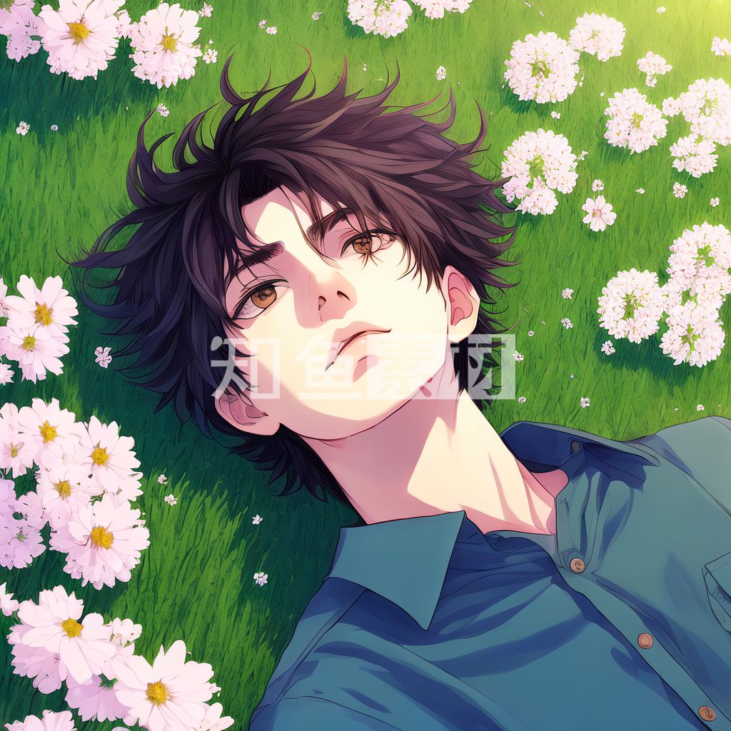 一个戴着VR眼镜的年轻人在空中飞翔,平面插画风格 6