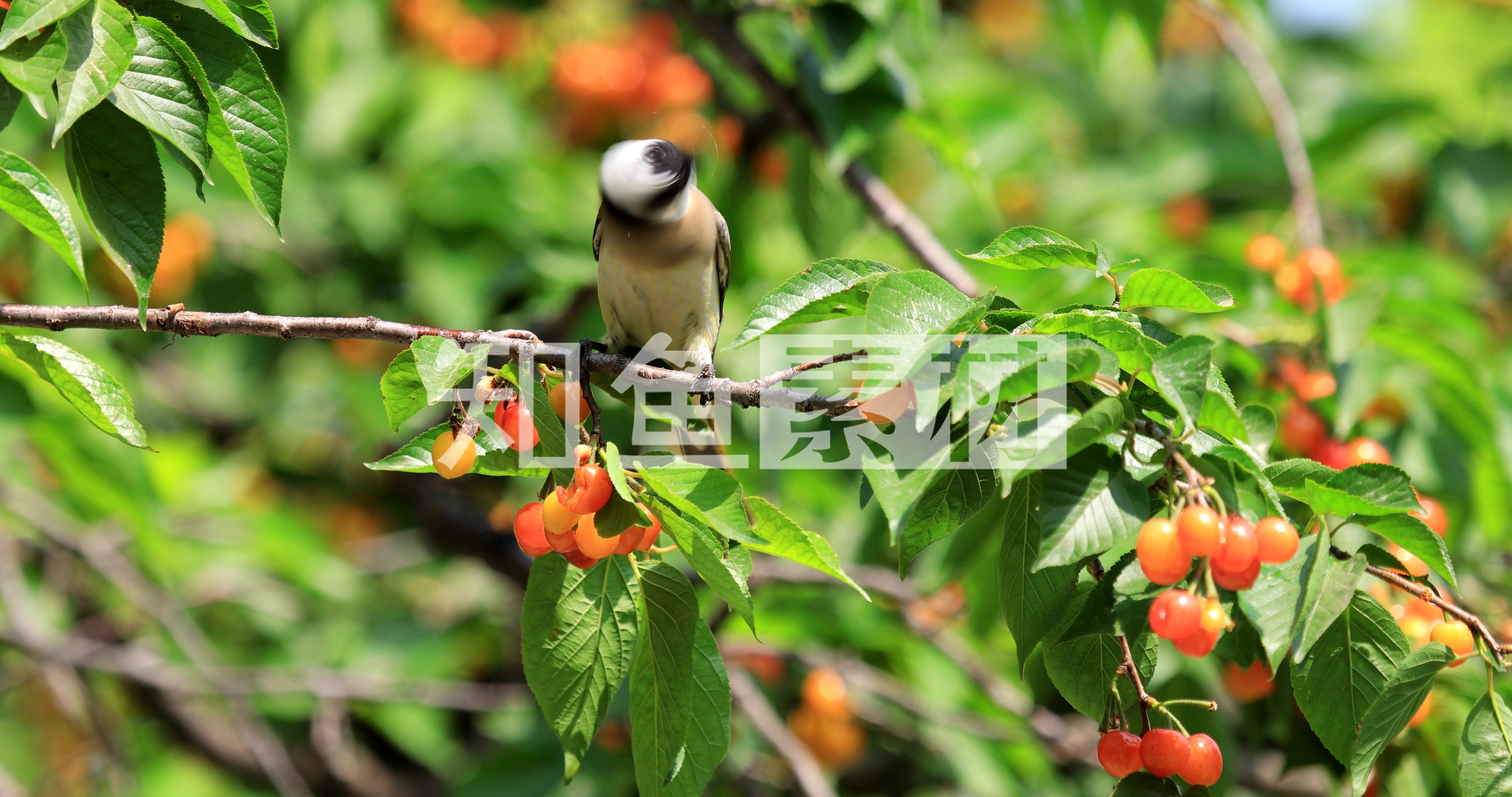 实拍鸟儿吃樱桃