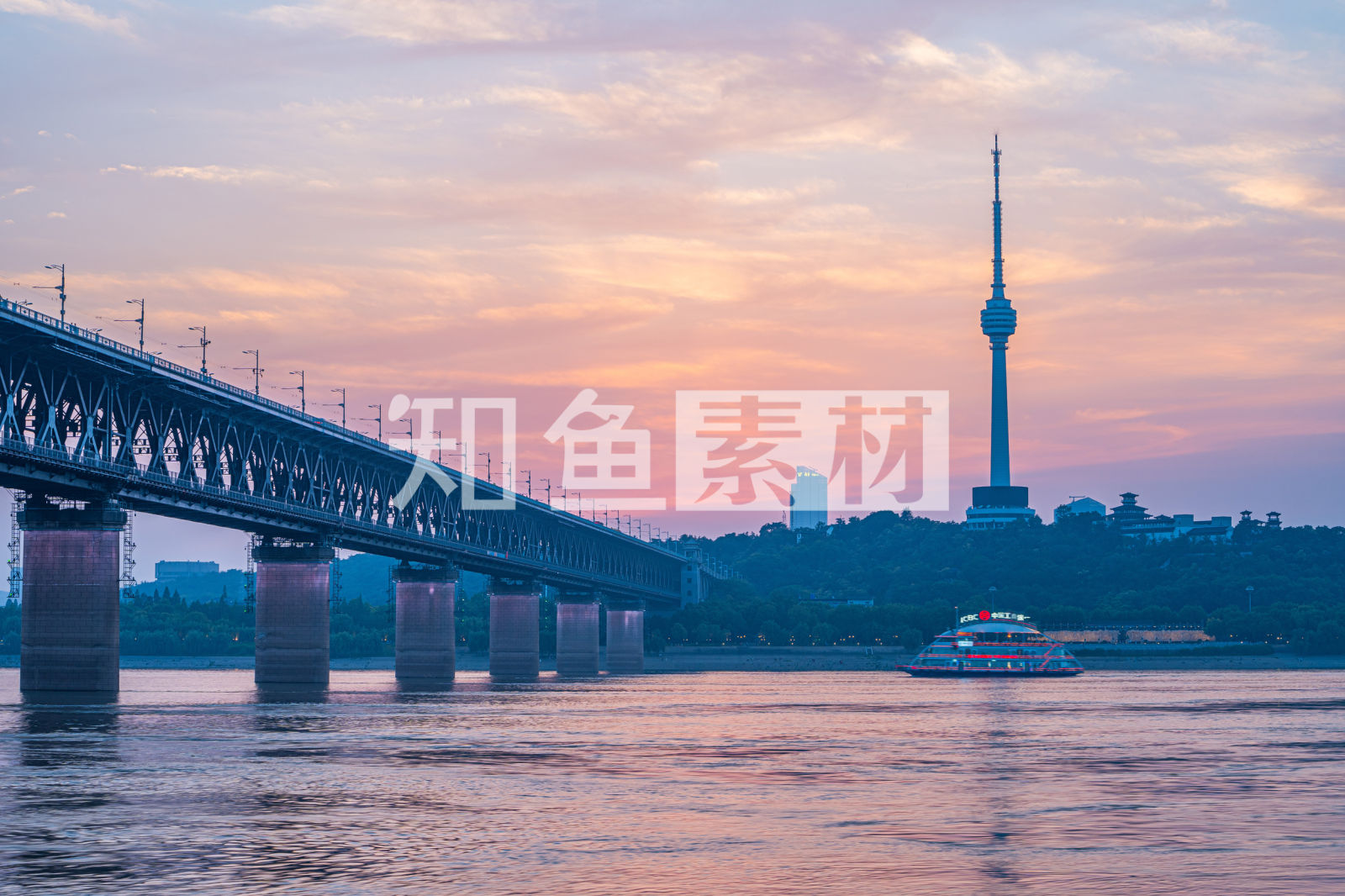 武汉长江大桥江滩龟山电视塔傍晚晚霞