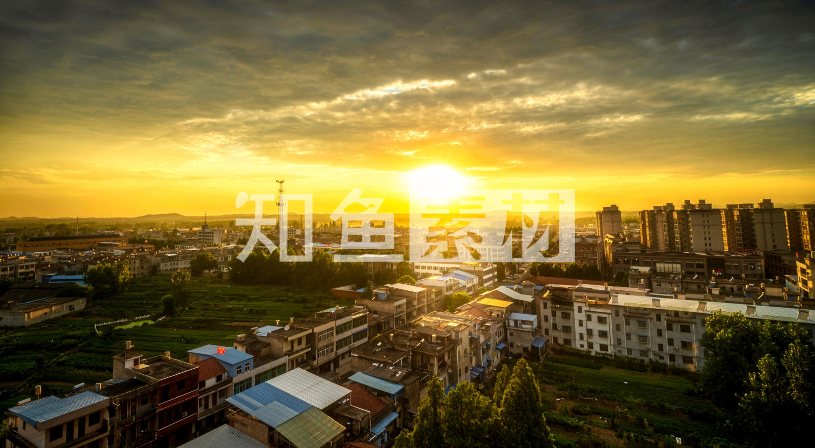 乡村小镇日落晚霞