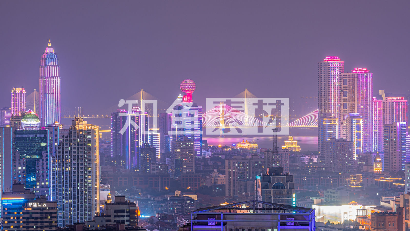 武汉江边大桥紫色霓虹灯傍晚实拍