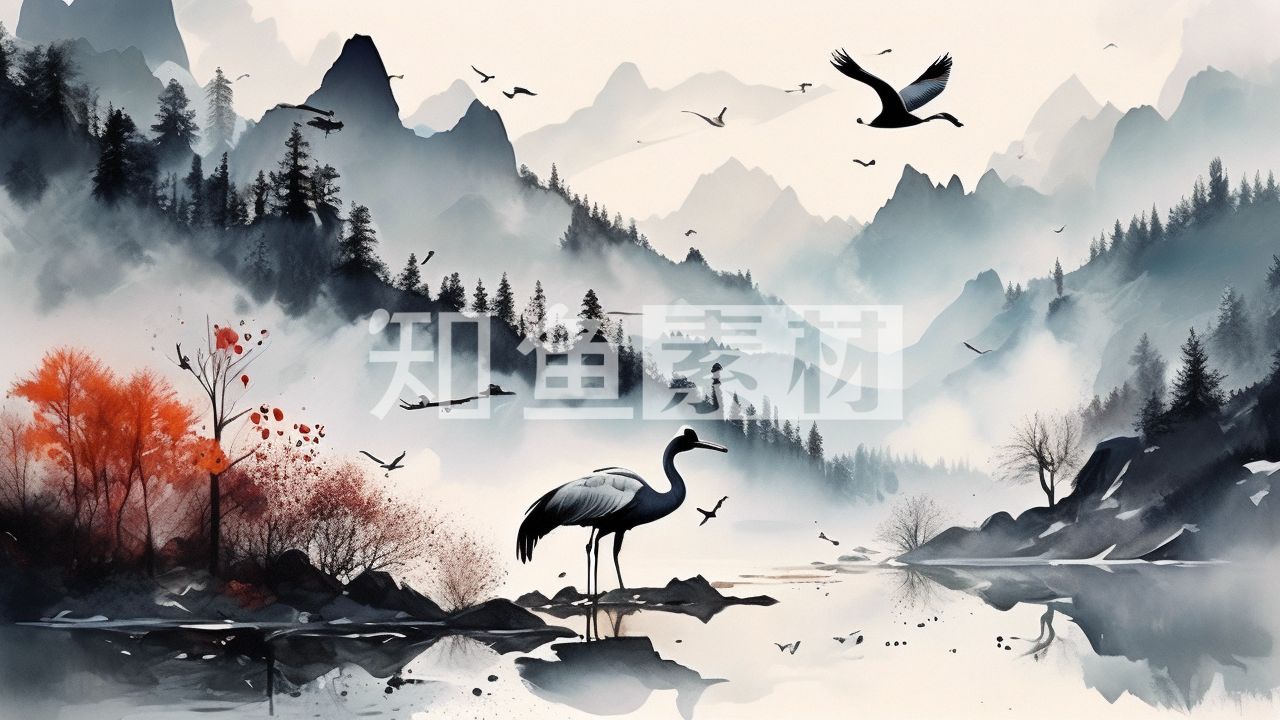 国风山水鹤插画背景 11
