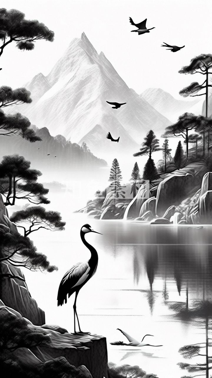 国风鹤山水风景插画 71