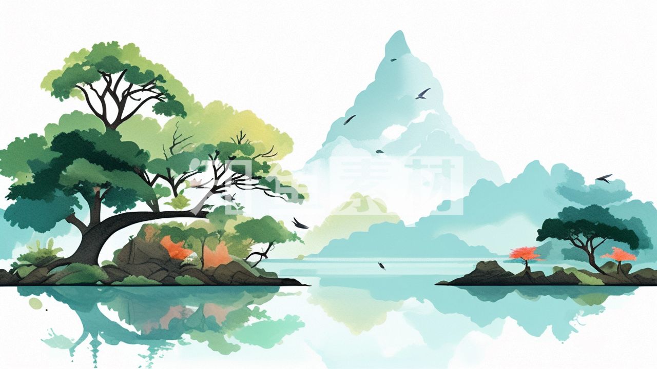中国画园林植物水亭子插画 2