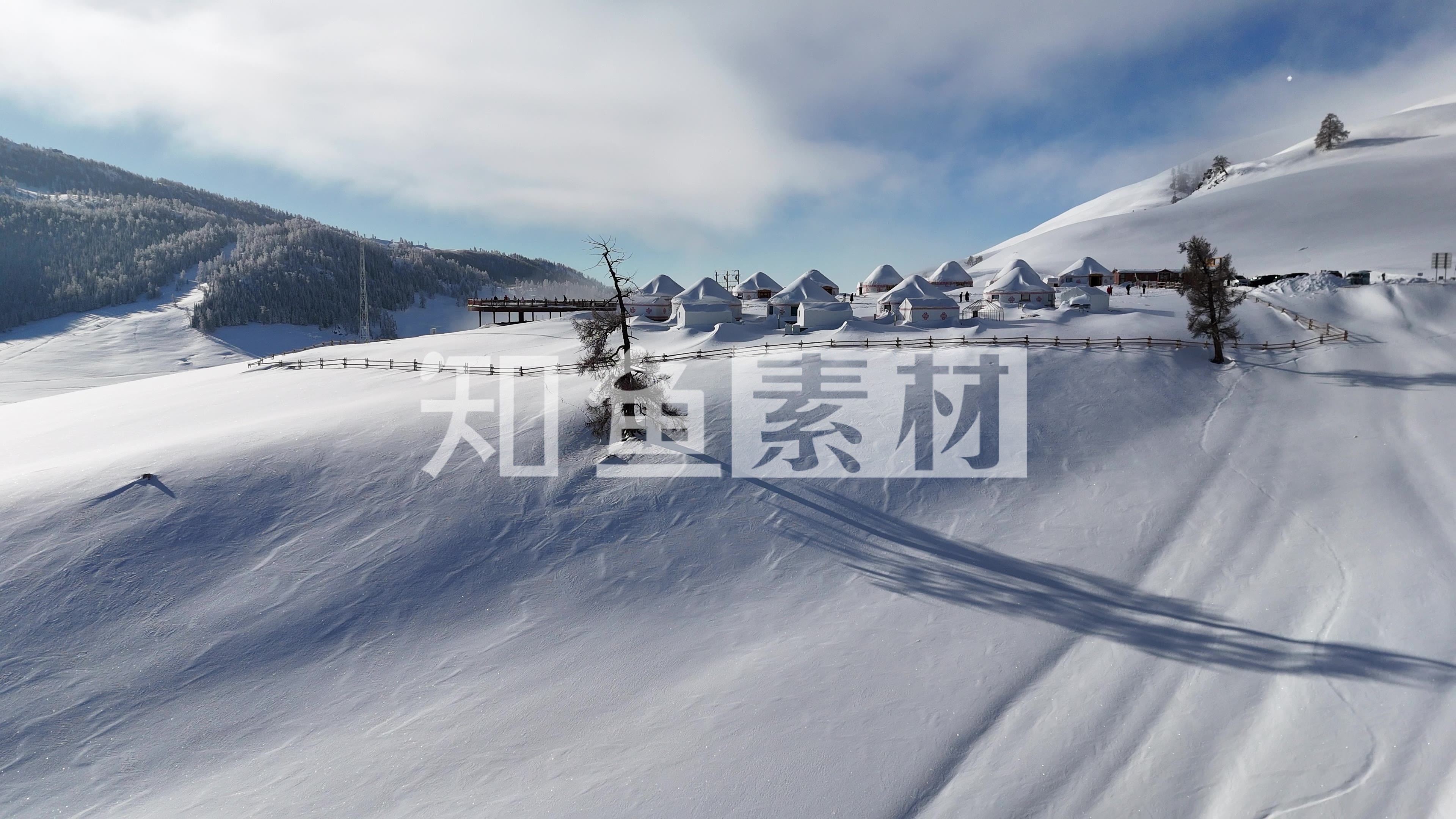 喀纳斯景区草毡屋冬季雪地航拍 2