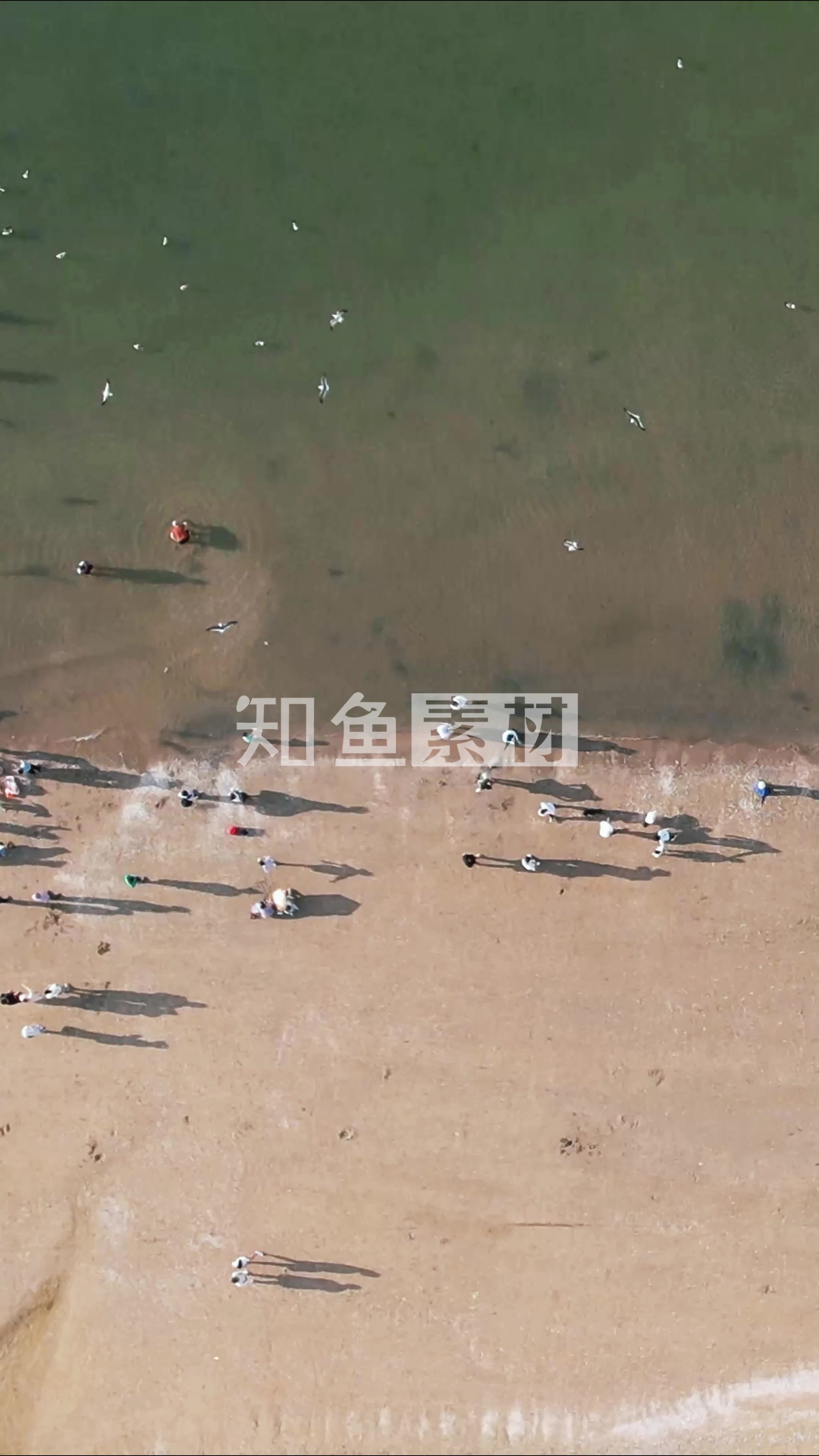 俯拍大海海浪沙滩海鸥竖屏