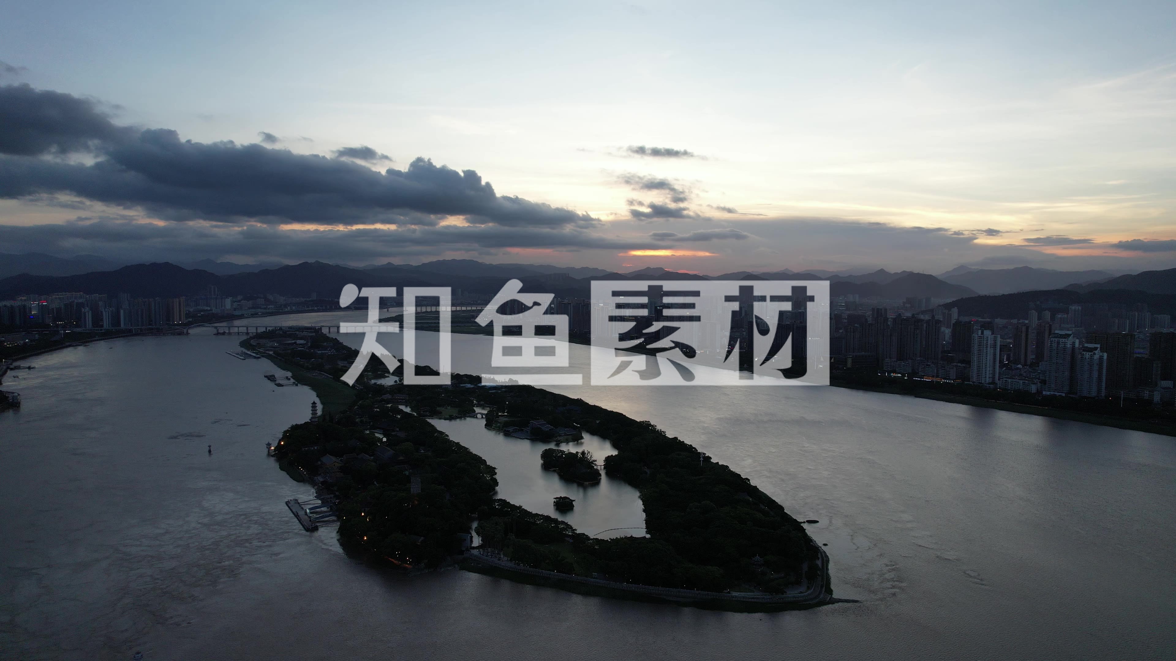 福建龙岩城市落日晚霞夕阳夜幕降临航拍