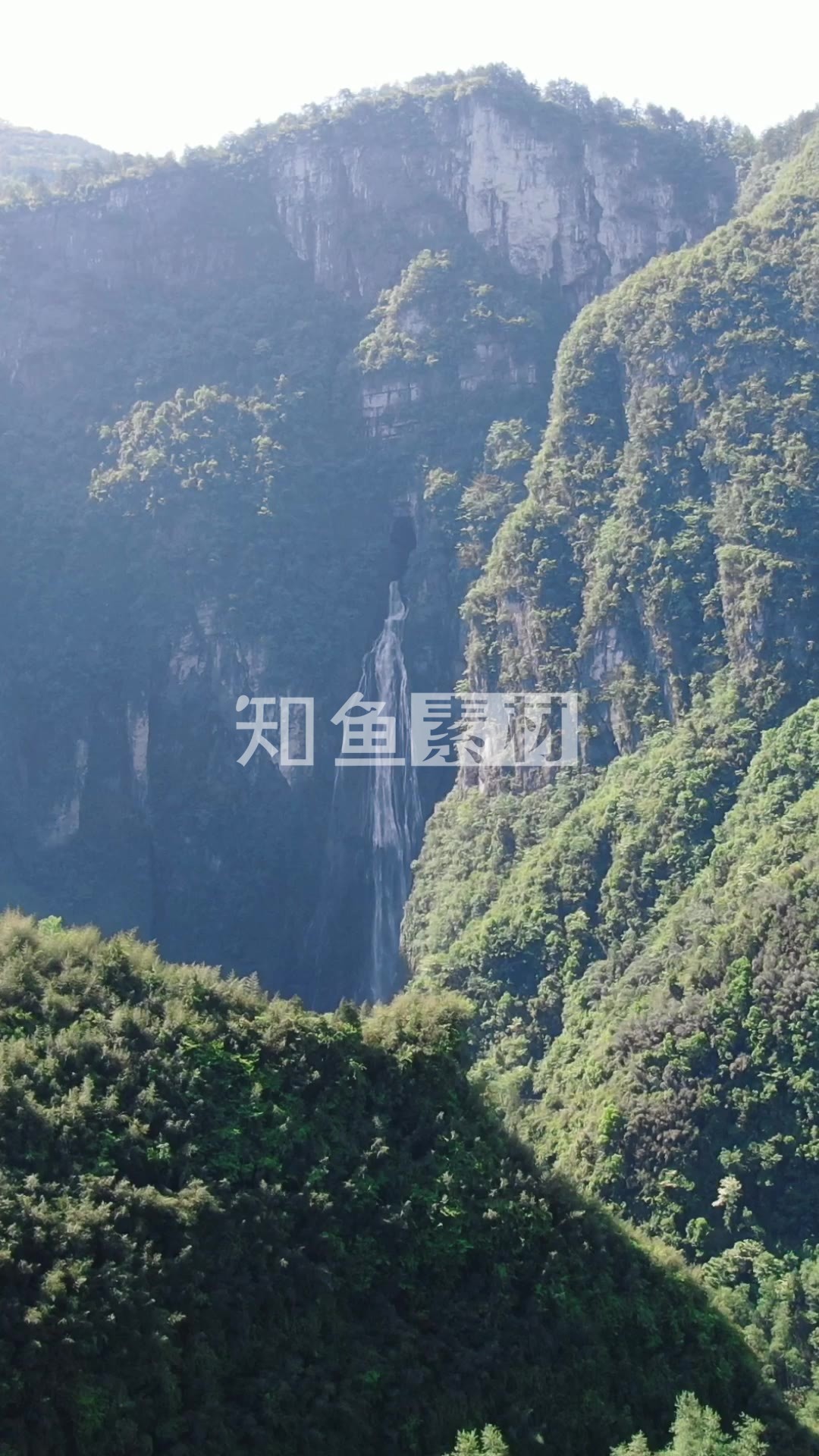 旅游景区湖南湘西大龙洞瀑布竖屏航拍