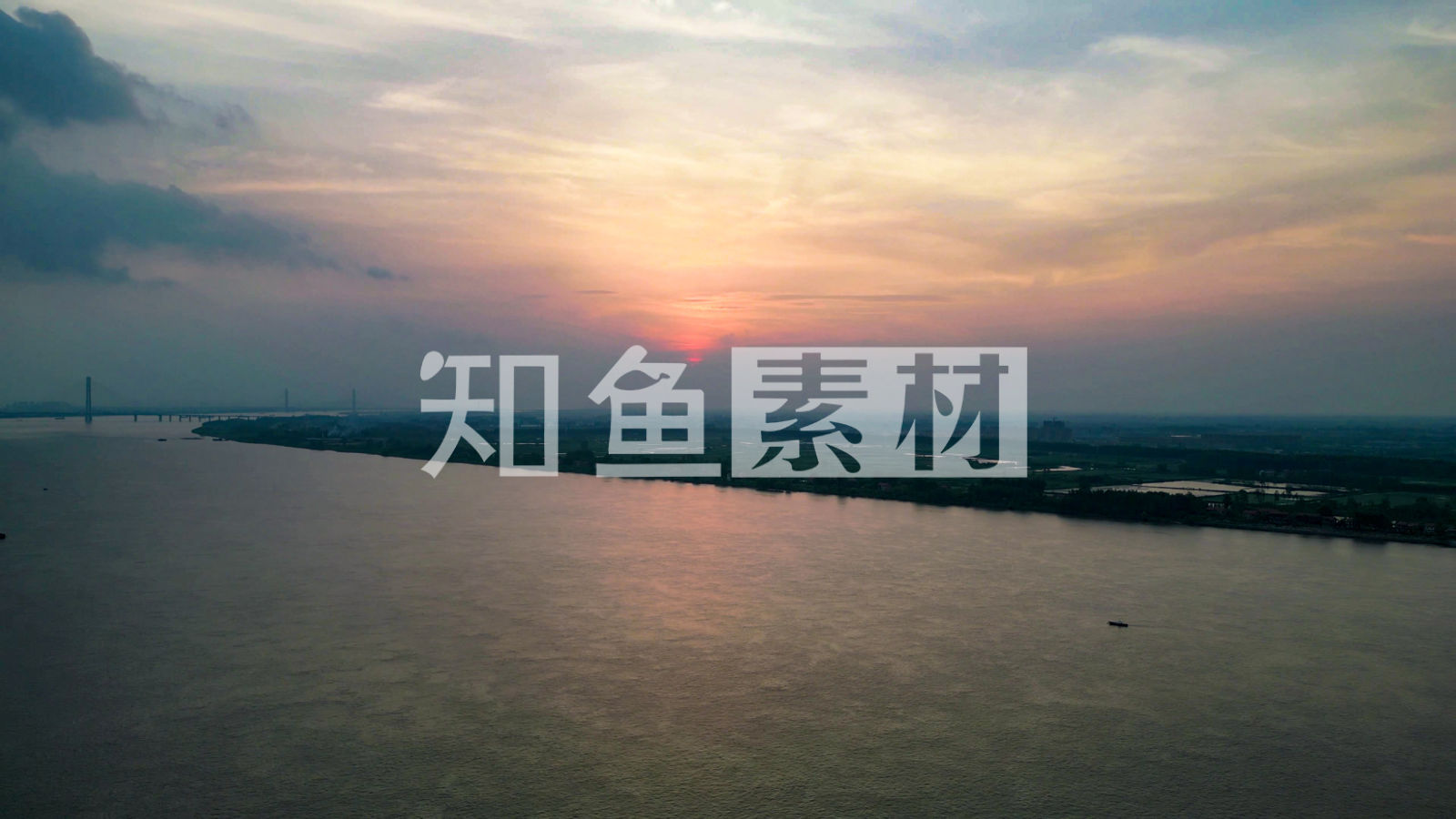 航拍长江日落晚霞夕阳西下