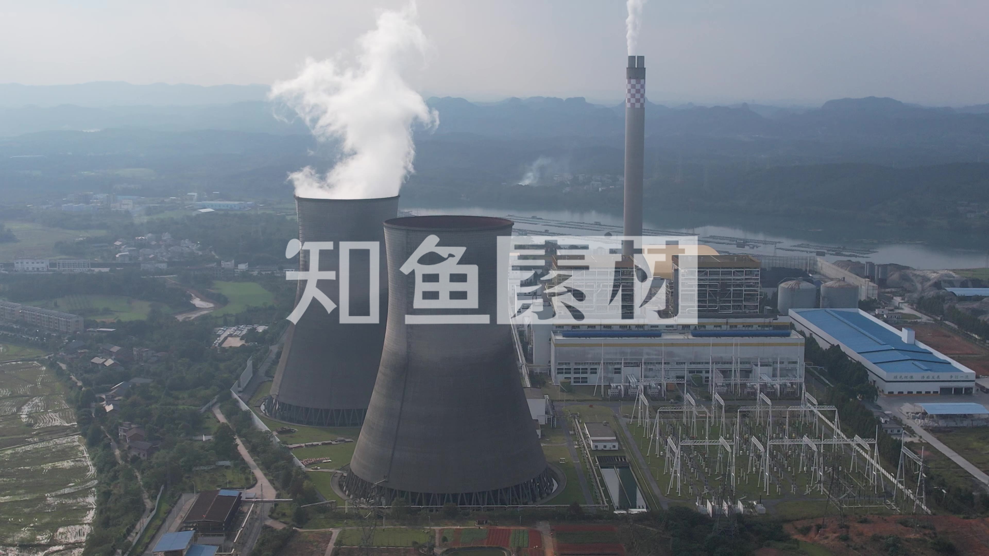 工业生产工厂烟冲炊烟火电厂电力航拍