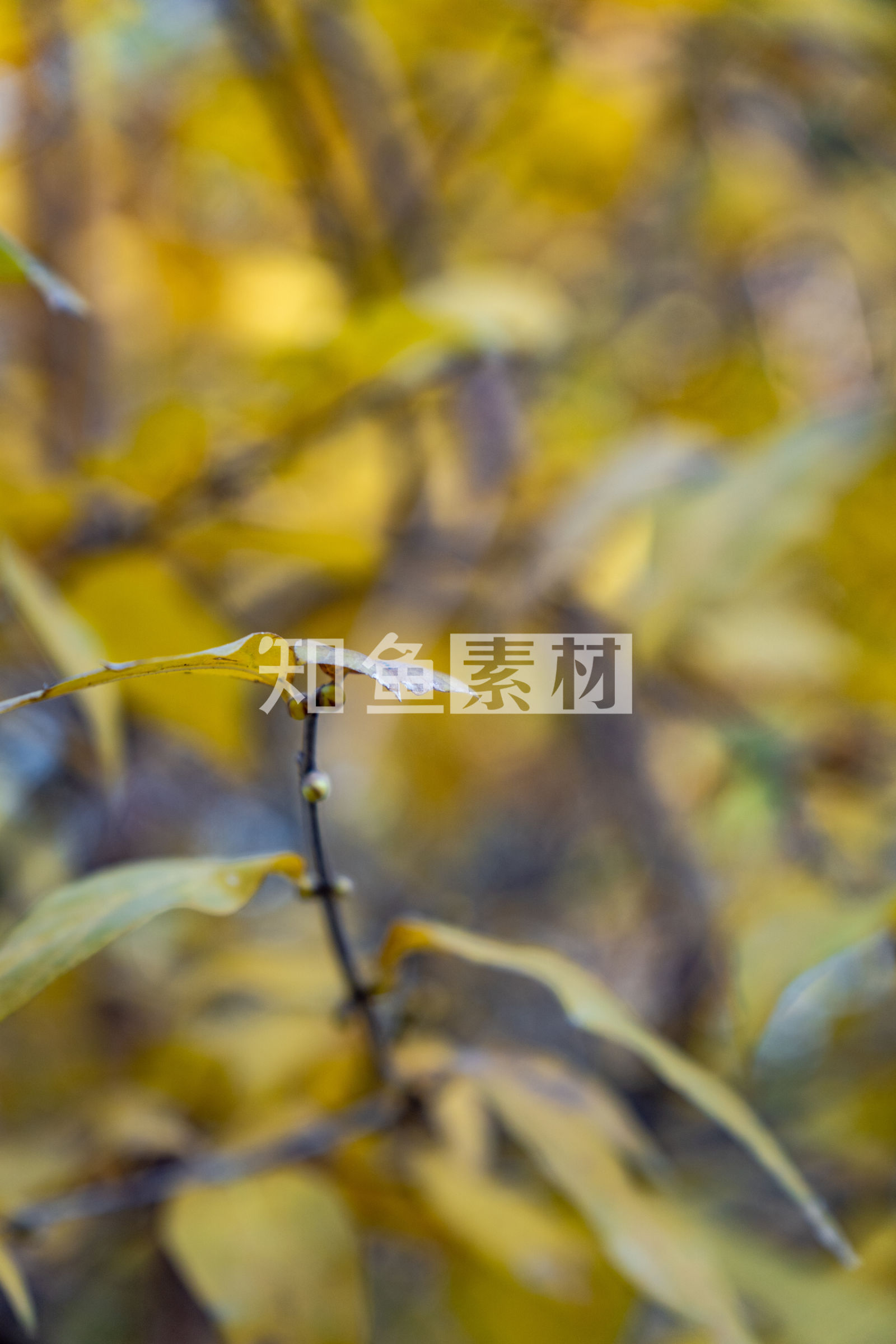 秋天枯黄树叶植物摄影图