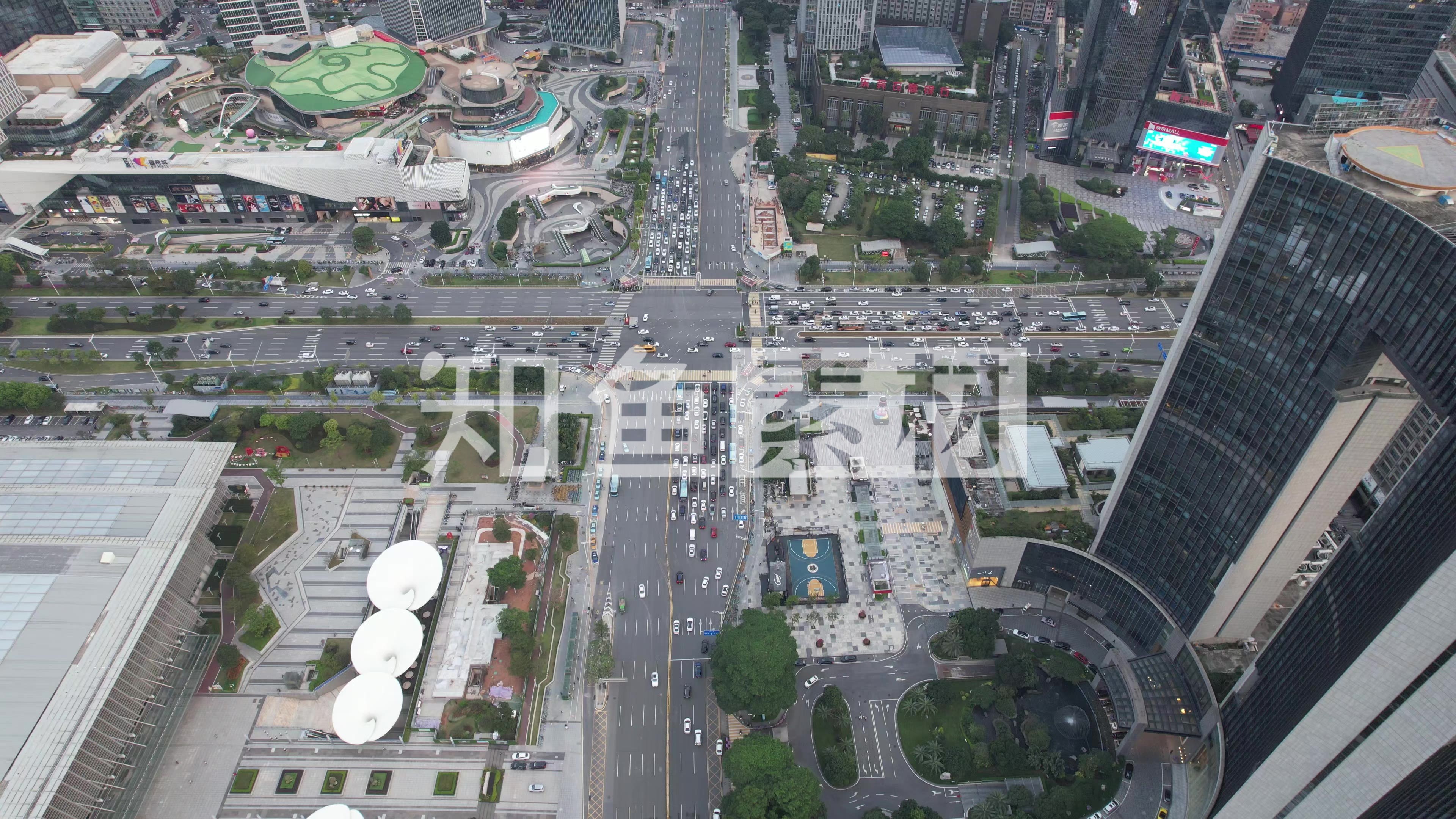城市十字交叉路口拥堵交通东莞大道鸿福路交叉航拍