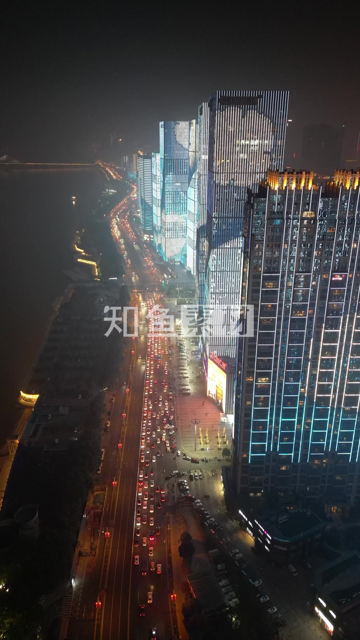 湖南 长沙 城市 夜景 交通 竖屏 航拍