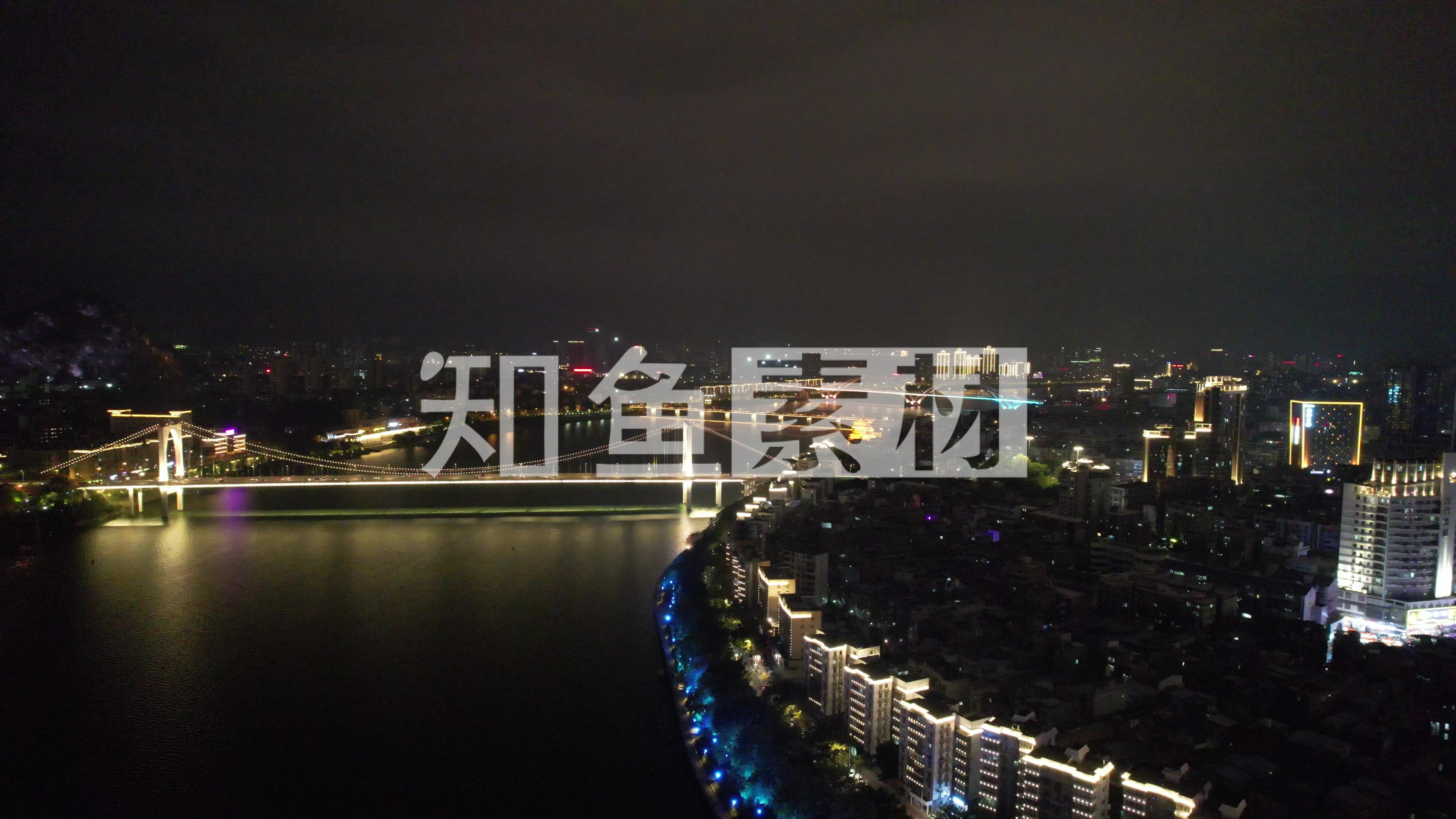 广西柳州柳江桥梁交通夜景灯光