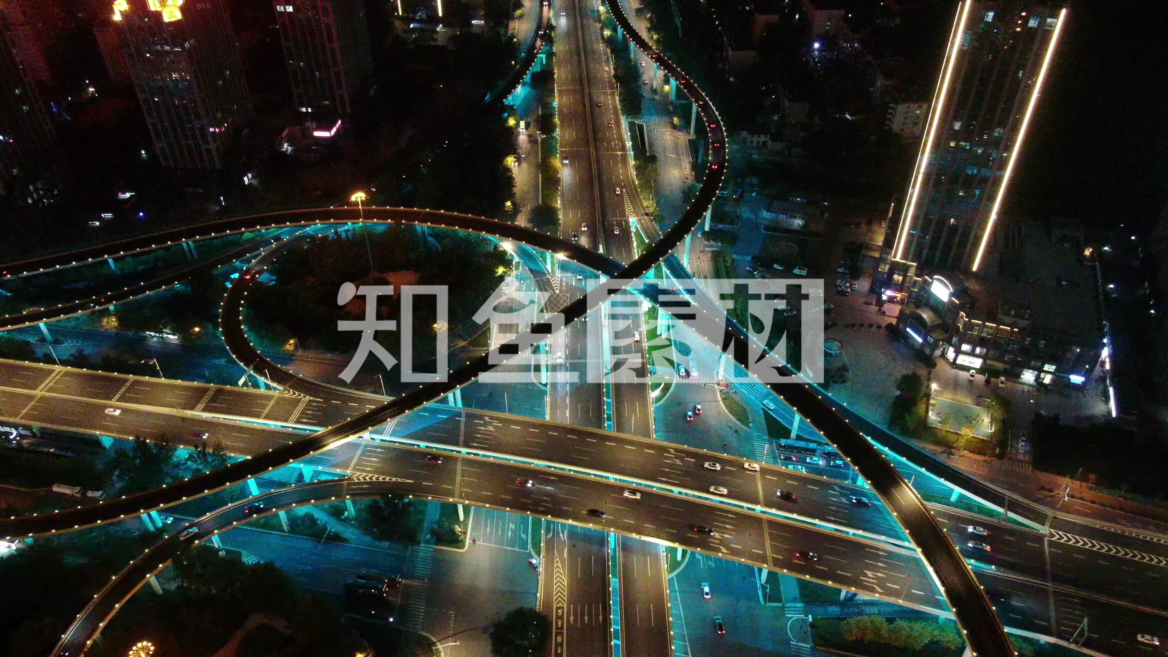 济南城市夜景交通航拍