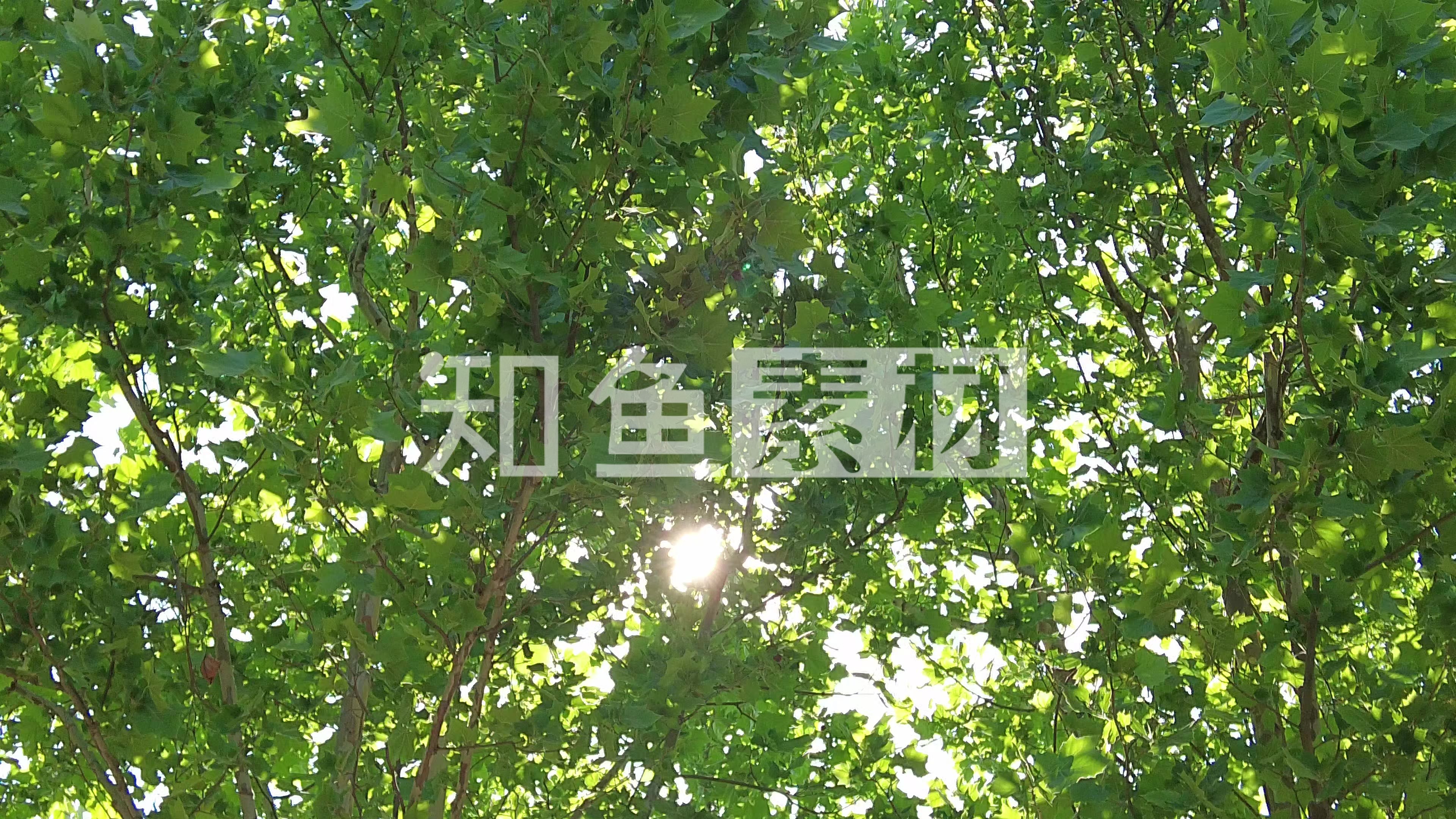 蓝天白云绿色植物树枝树叶夏日风景实拍