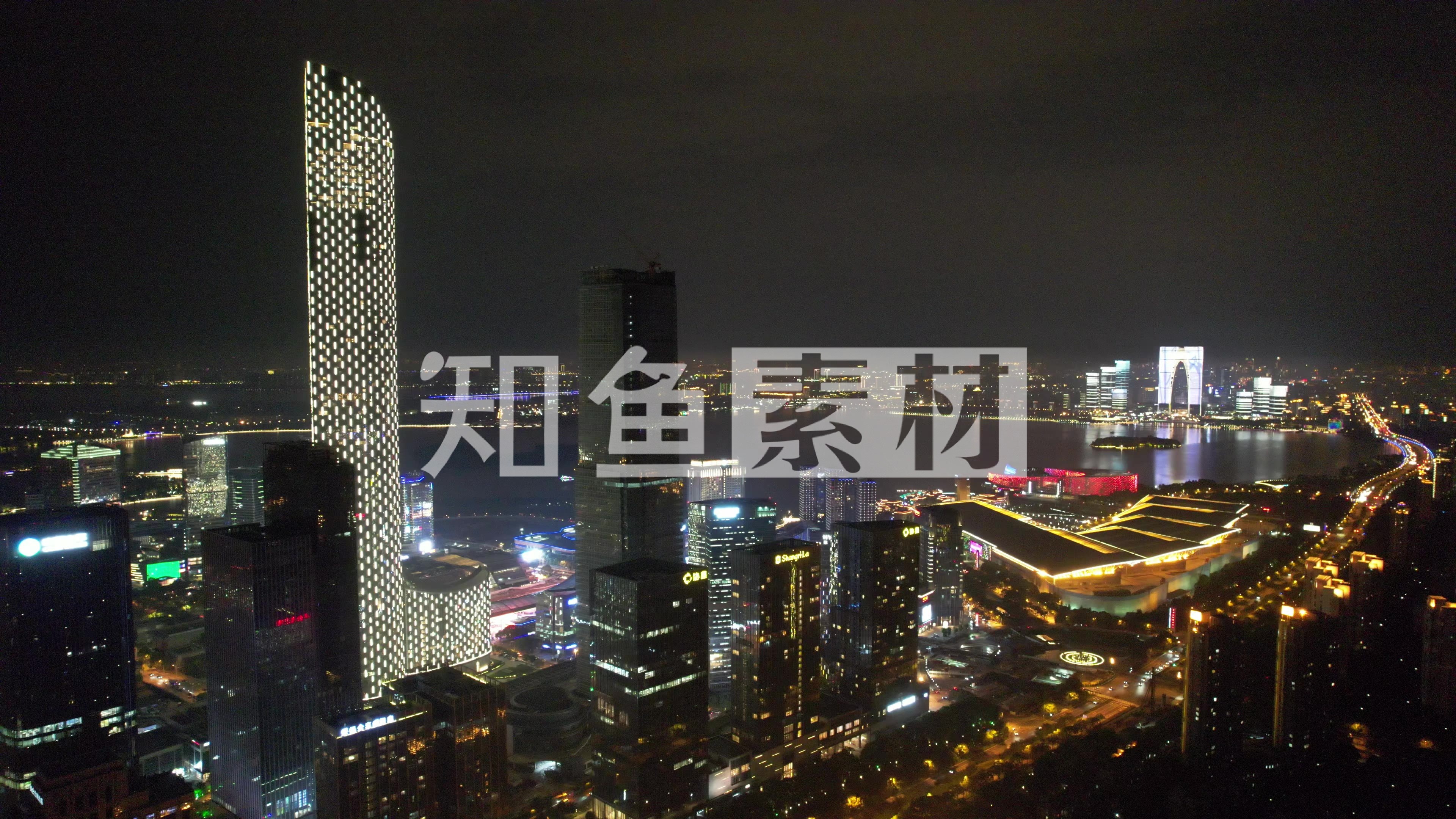 江苏苏州工业园区国金中心苏州之门夜景灯光航拍
