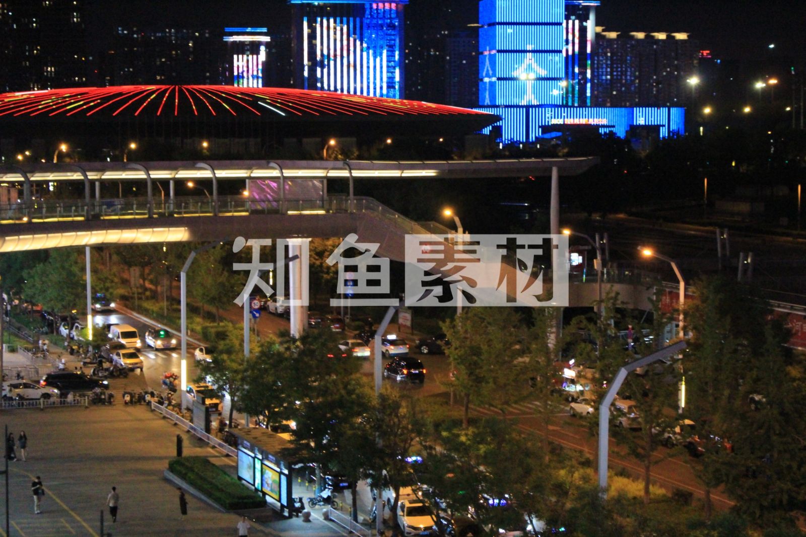 航拍城市夜景交通人行天桥