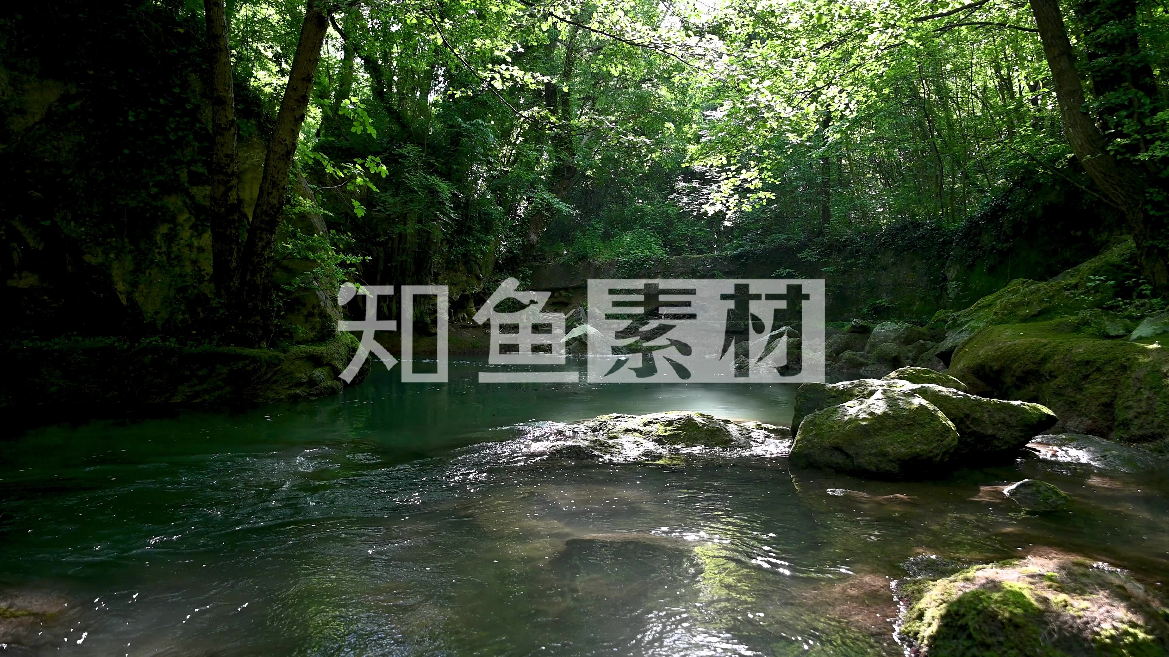 4k河流水自然森林 宁静岩石特写山水