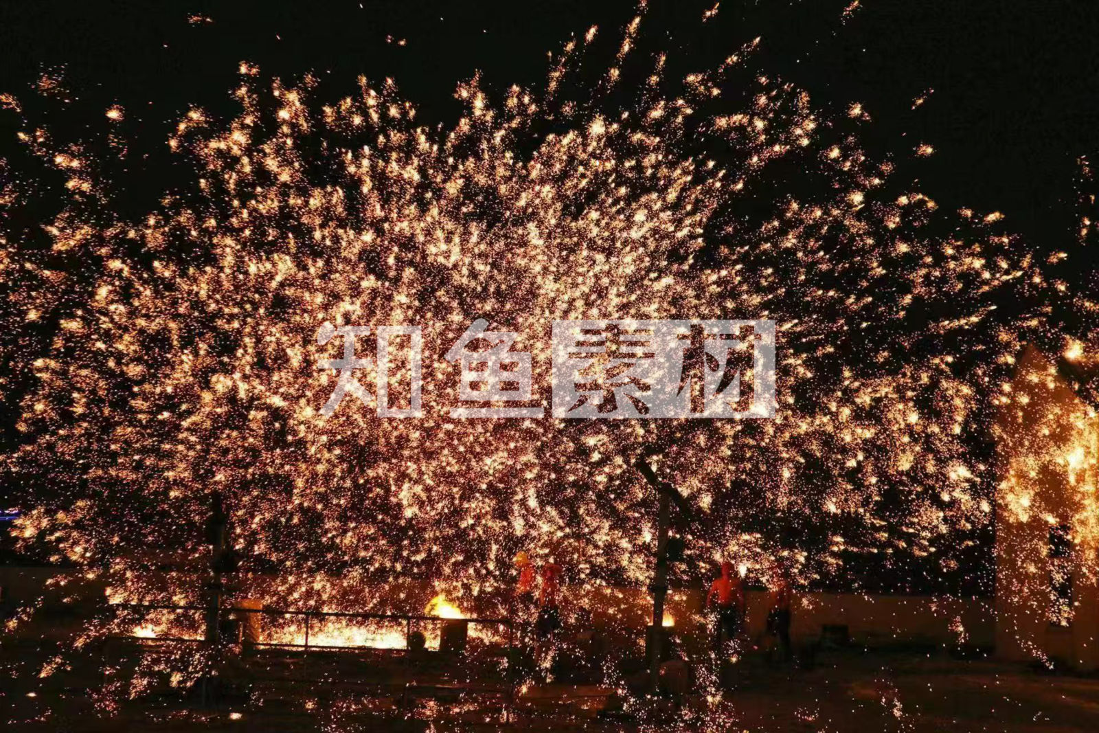 三位工人身穿红色上衣,头戴安全帽,正聚精会神地在铁砧上作业。他们的动作流畅而有力,每一个瞬间都透露出对工作的专注与热爱。夜空被绚烂的火花点亮,宛如星辰般璀璨夺目。这些火花不仅点缀了黑暗,更为整个场景增添了一份神秘与浪漫。火花的光芒与工人们辛勤劳动的身影相互映衬,共同构成了一幅动人心弦的画面
