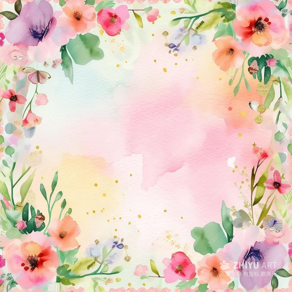 白色背景上呈现出水彩绘画效果,带有柔和的粉彩色纹理