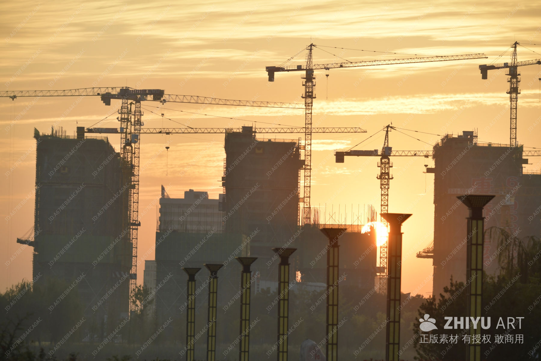 夕阳下的建筑工地