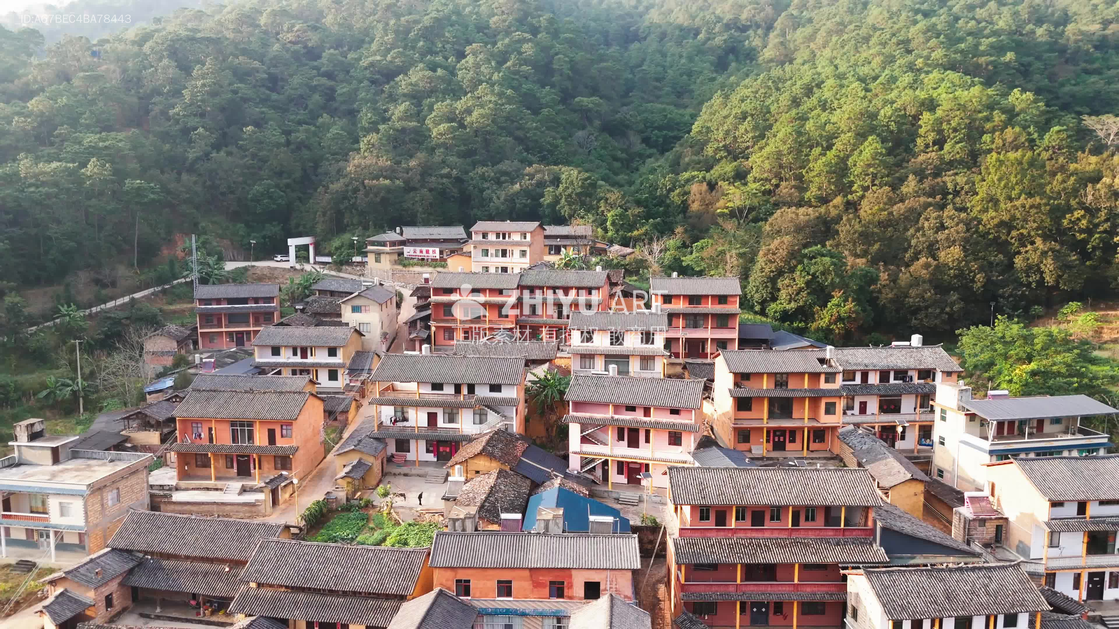 古村落 山林 建筑群 鸟瞰视角 宁静 住宅区 镇 市郊 邻近街区 村 山中避暑地 房子 农村 山 自然景观 地标建筑