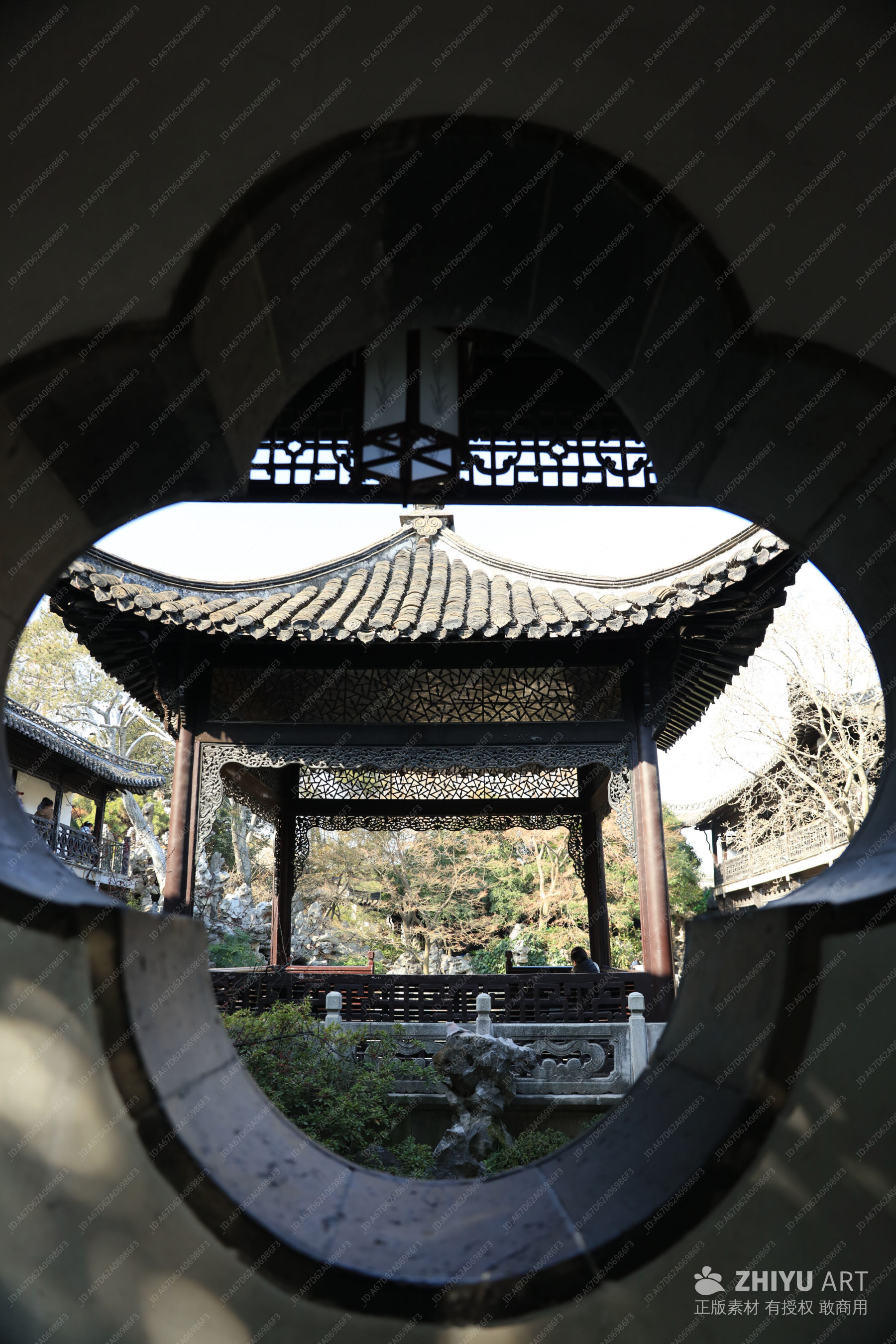 用了窗户作为前景拍后面的亭子