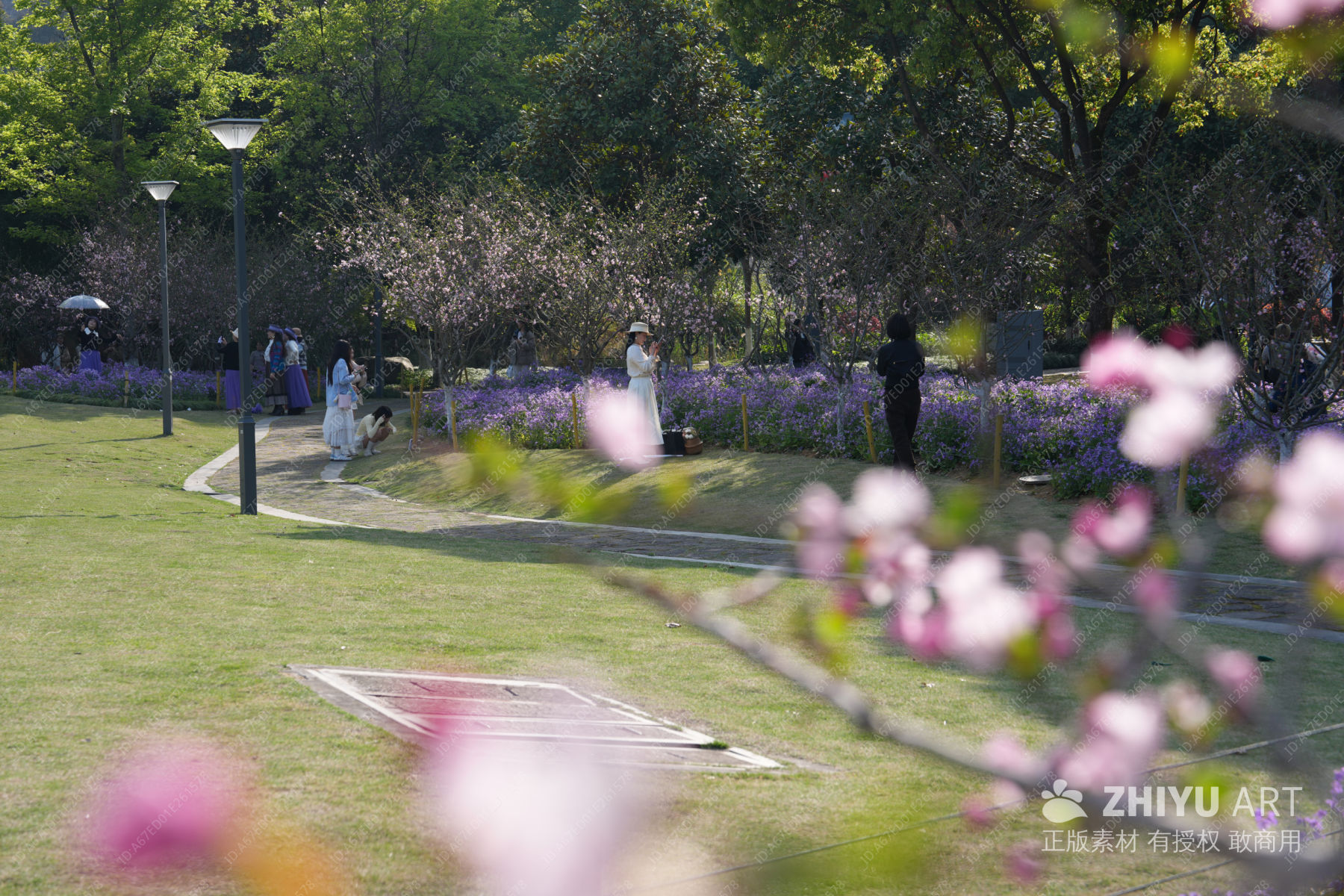 公园 樱花 草地 行人 拍照 春天 休闲 花园 草坪 服装 自然景观