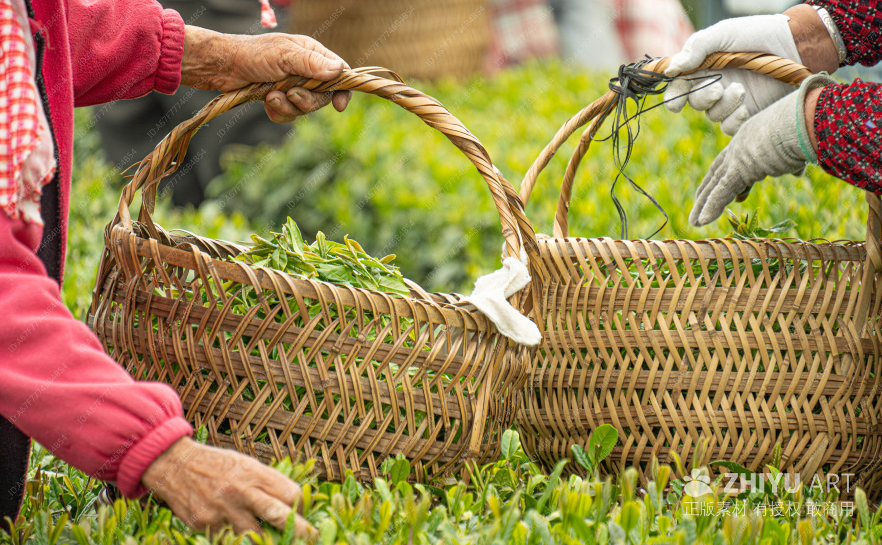 手提竹篮采茶