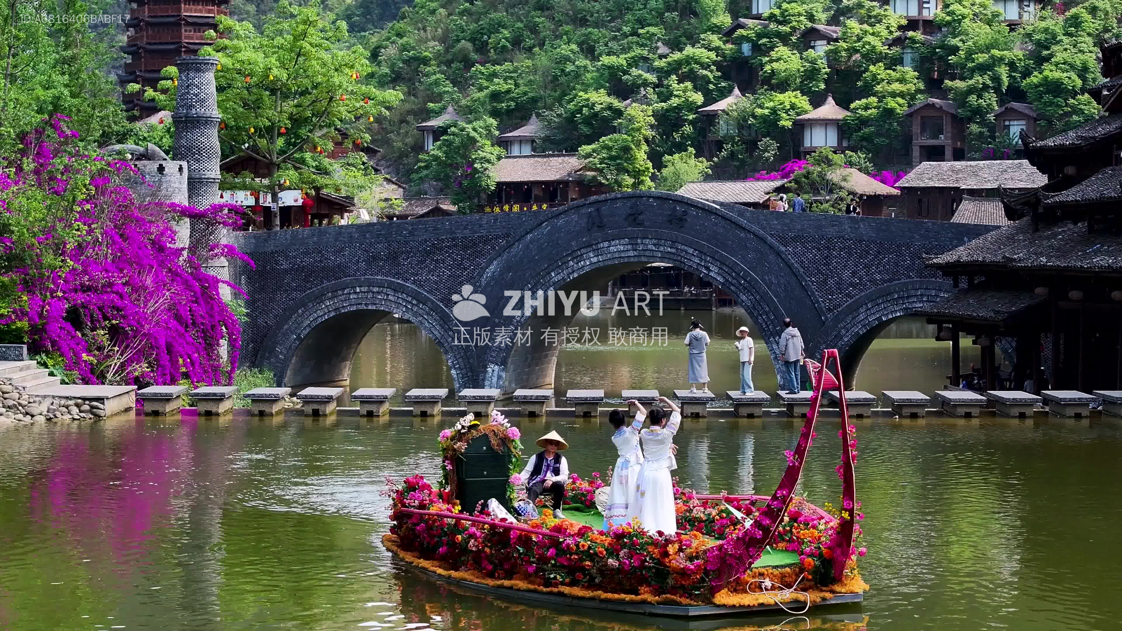 绿皮火车行驶穿过贵州峡谷大桥南昆铁路航拍