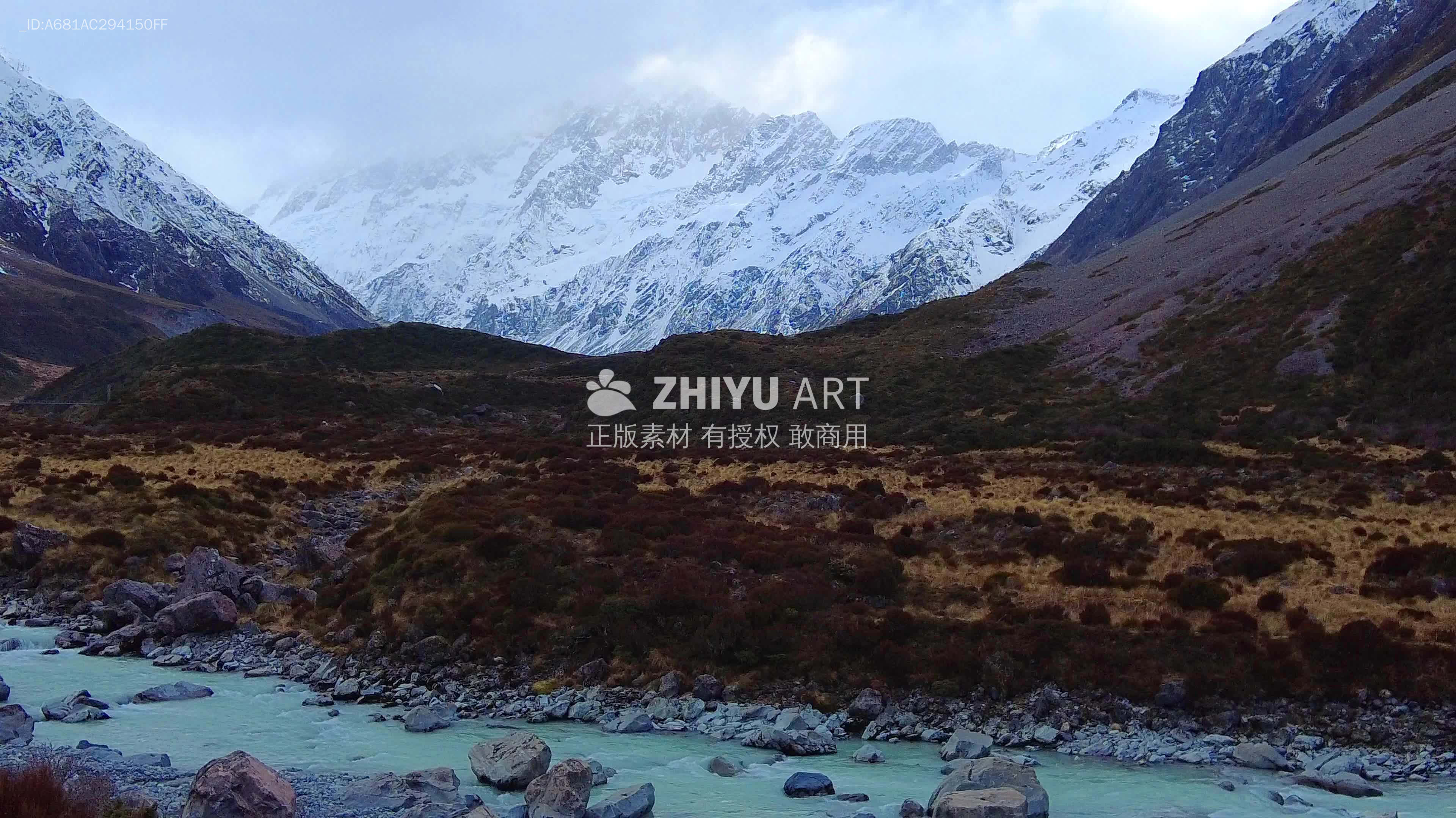 新西兰南岛胡克峡谷蓝色溪流和雪山草甸 1