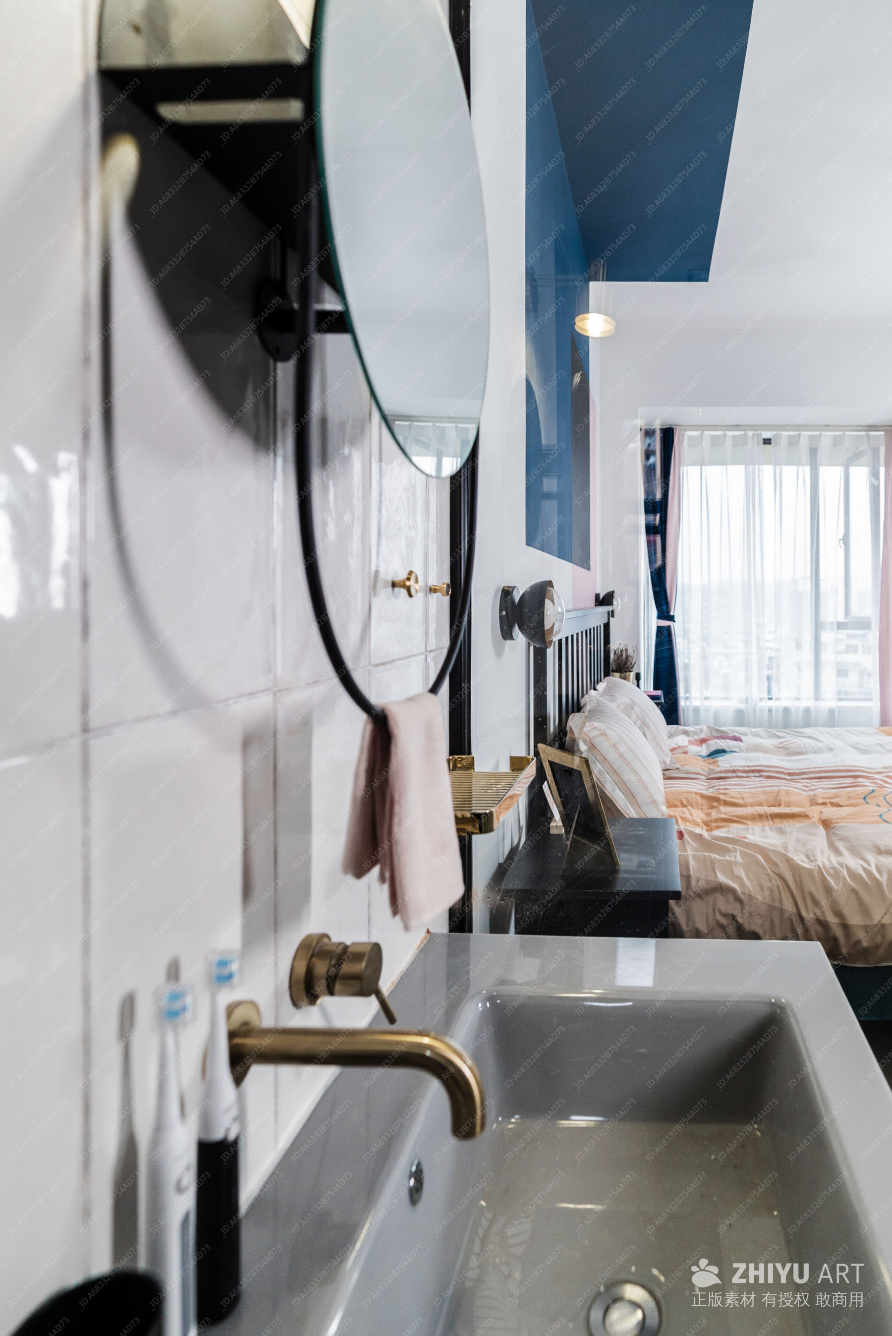 现代浴室与卧室一隅