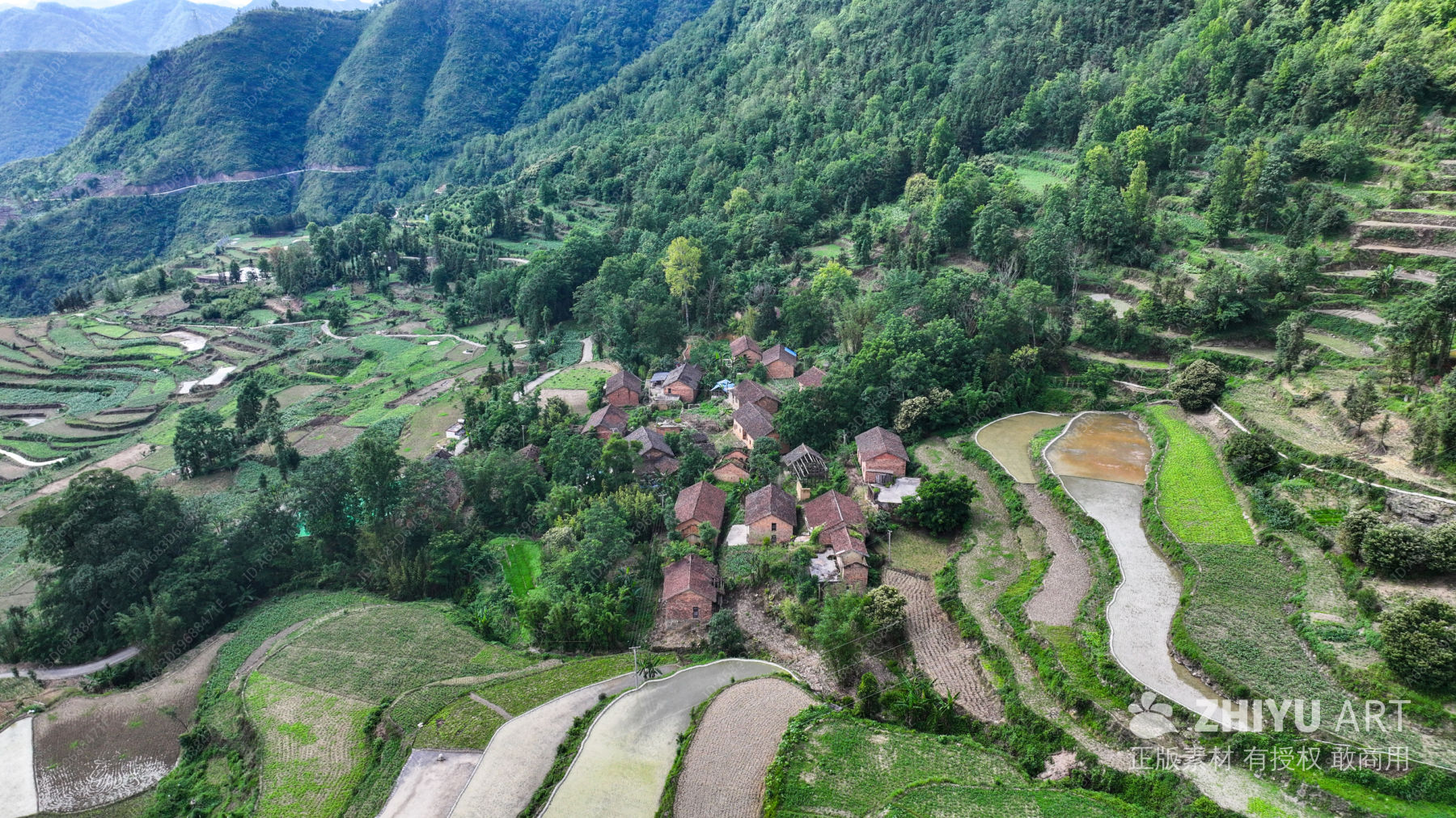 绿色环绕的传统村庄