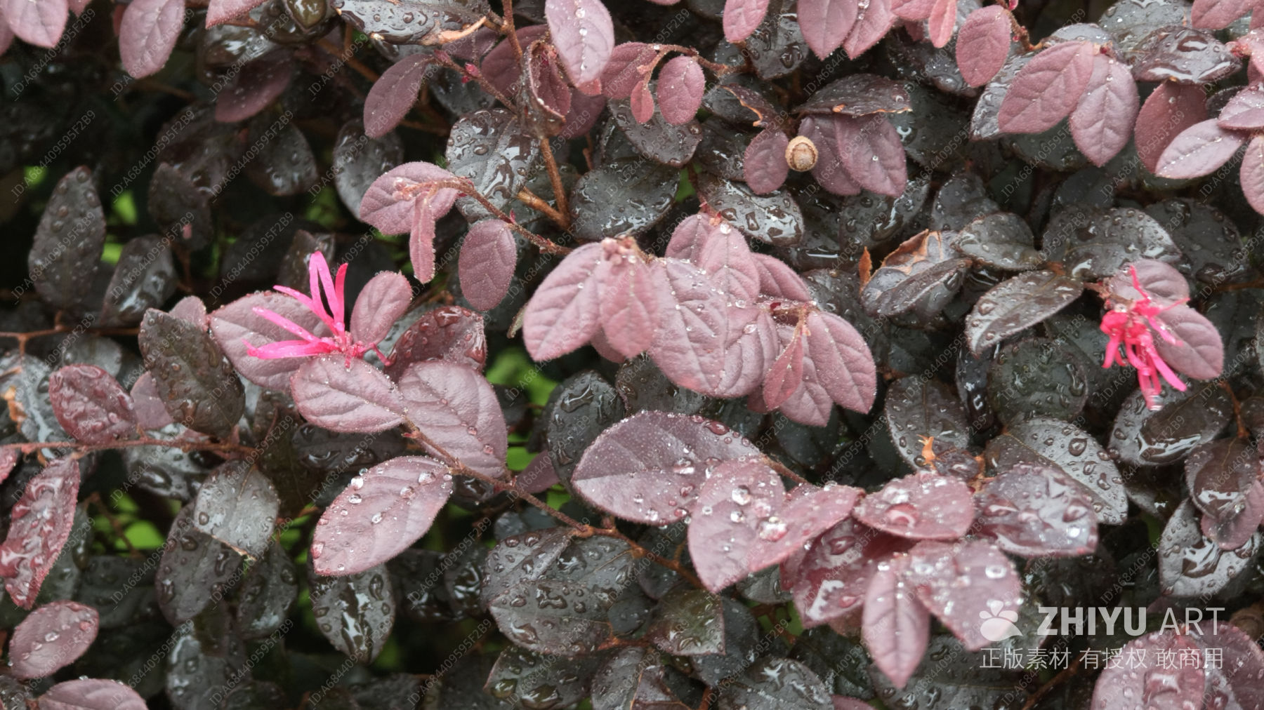 红花檵木 雨珠 粉红花簇 金缕梅科植物 金缕梅科 中式庭院 深紫红 紫色小花 雨中 雨中的花 花 宁静 花簇 紫叶植物 雨滴 粉色花朵 自然美景 清新氛围 户外场景 粉色 颜色