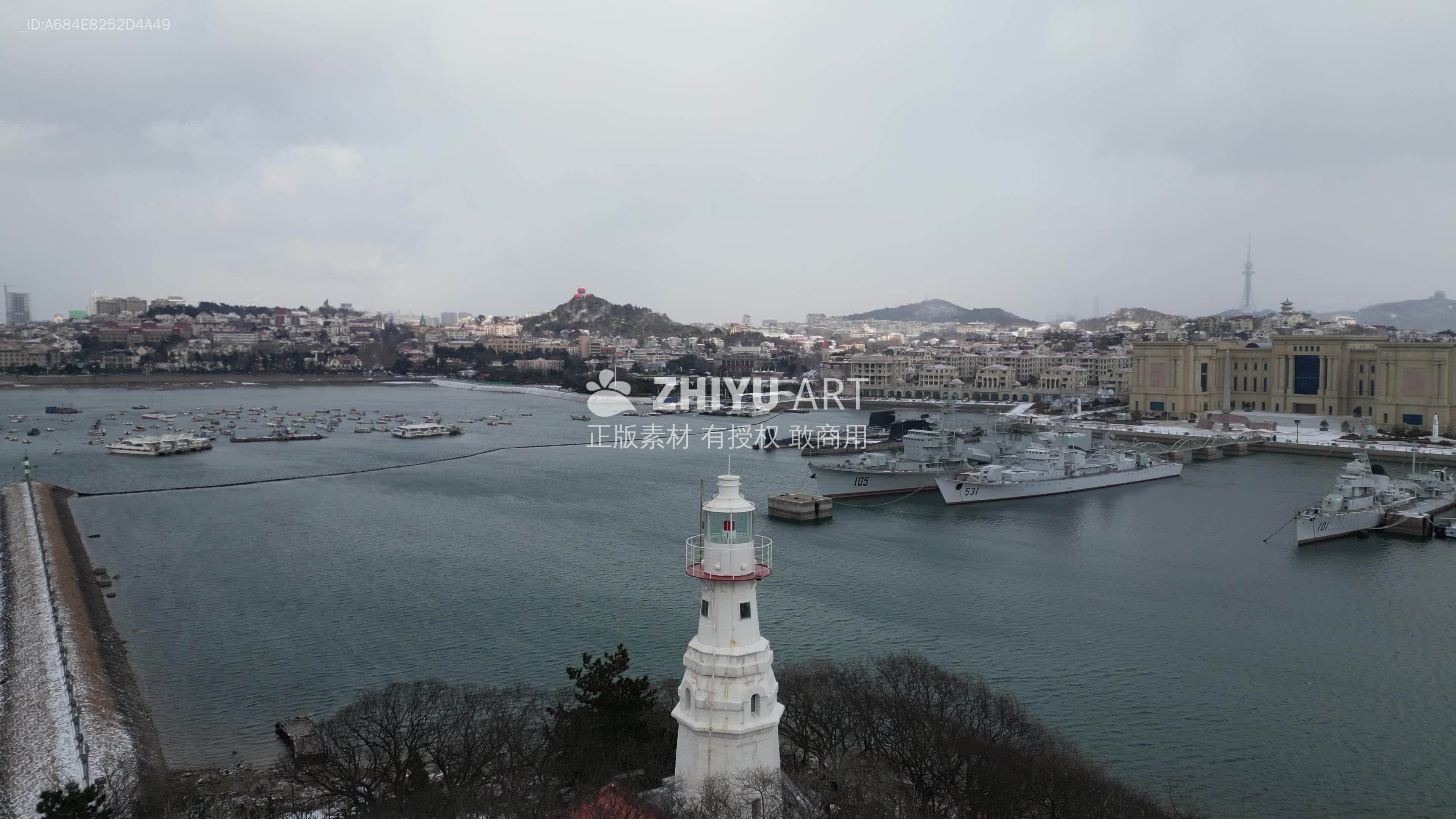 青岛市南海边老城区小青岛公园冬天雪景航拍 24