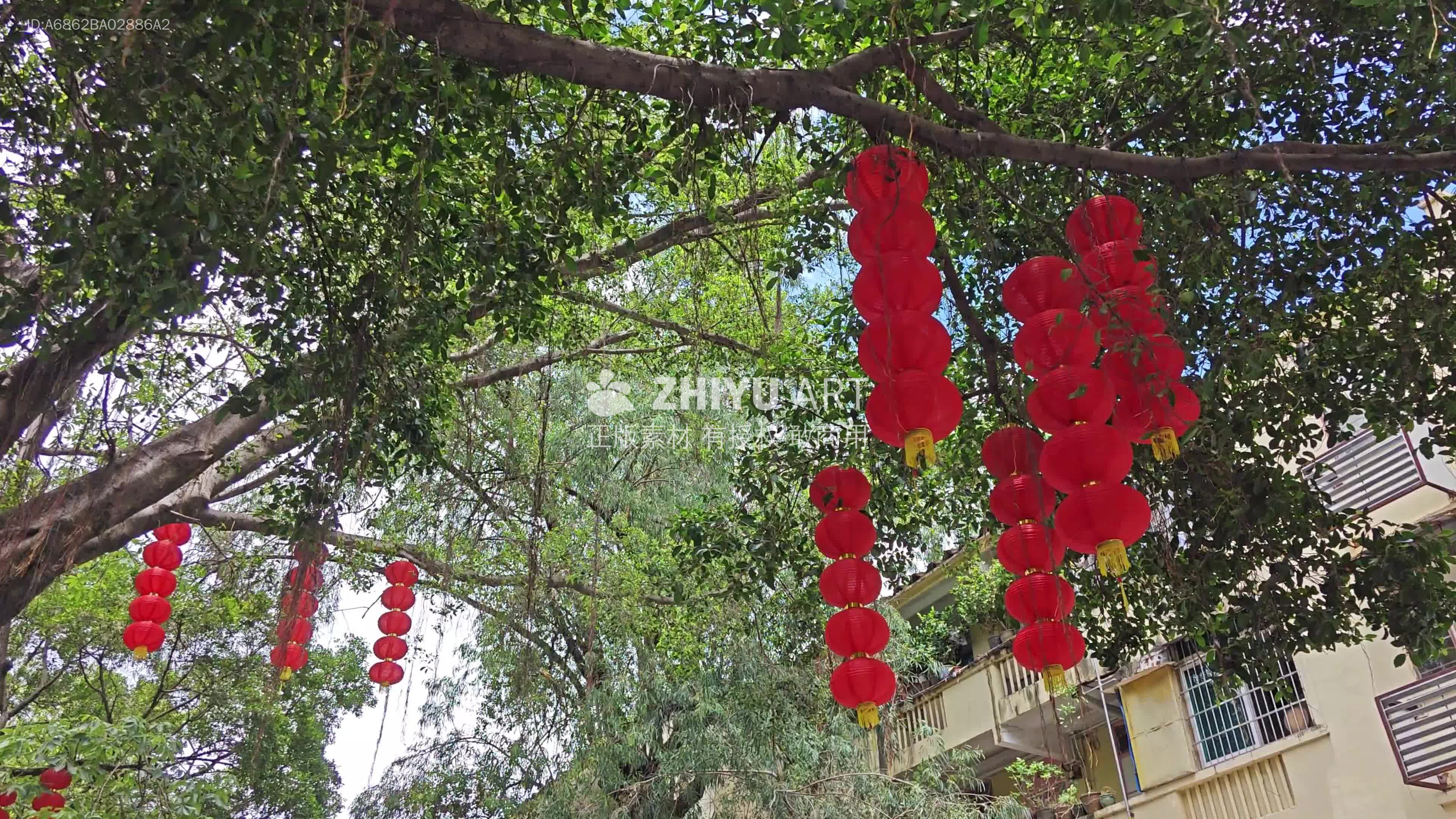 4K绿树红灯笼