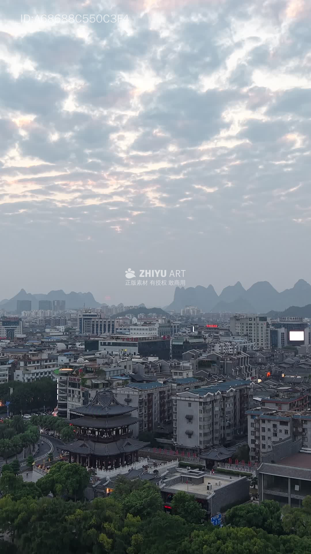 竖版航拍桂林连绵起伏山川城市 (8)
