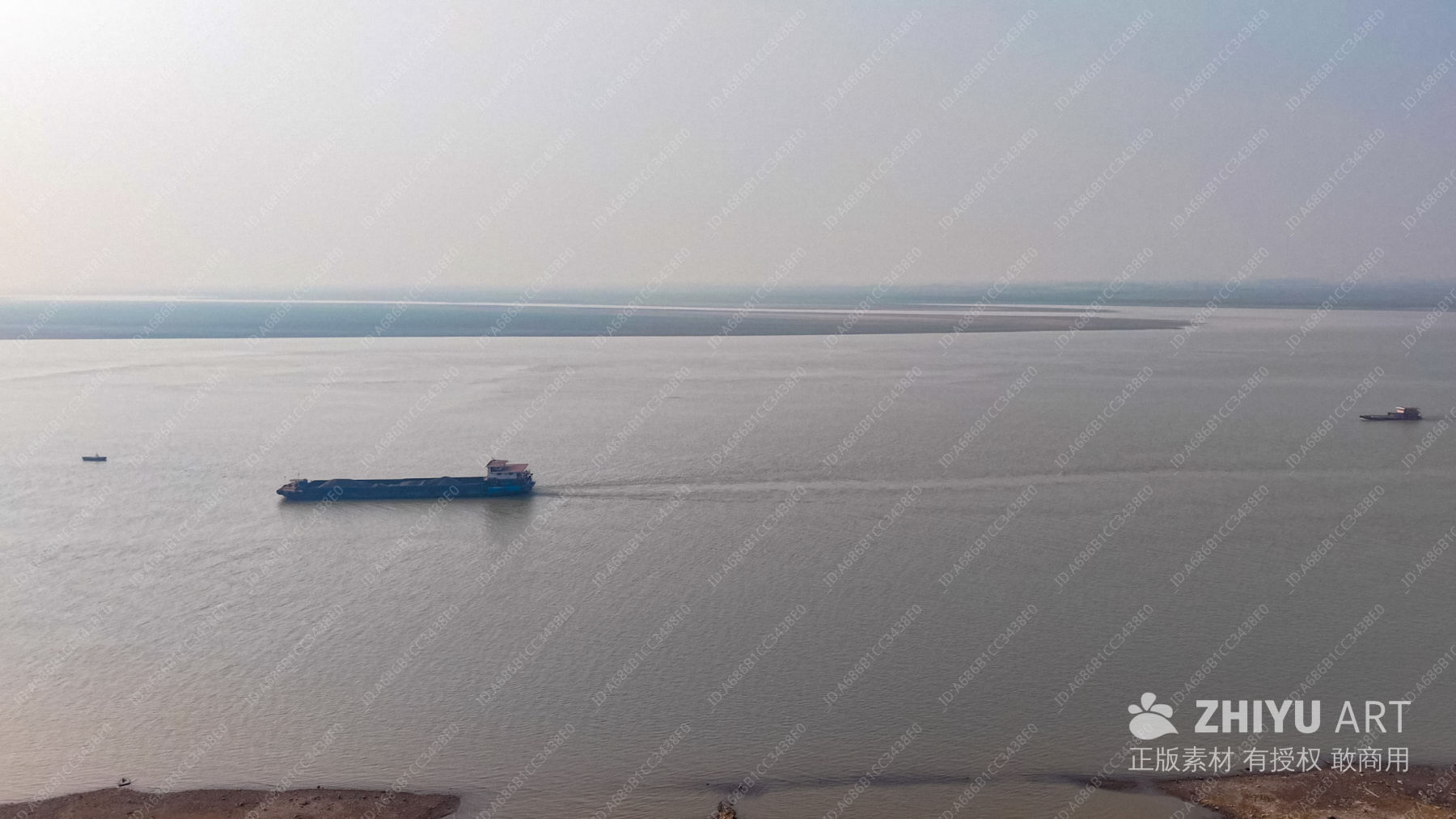 河上繁忙的货船与自然风光