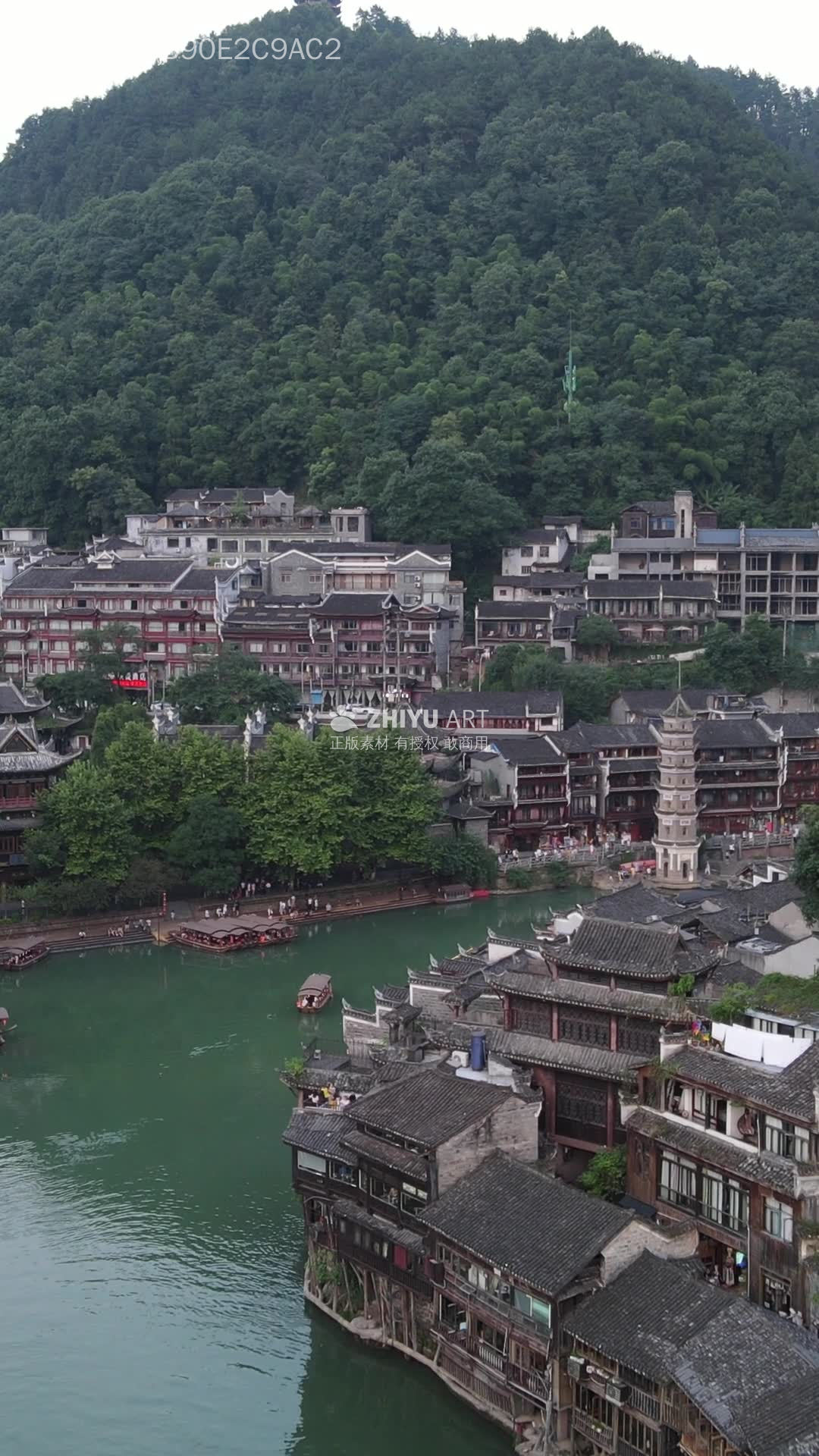 旅游景区湖南湘西凤凰古城竖屏航拍